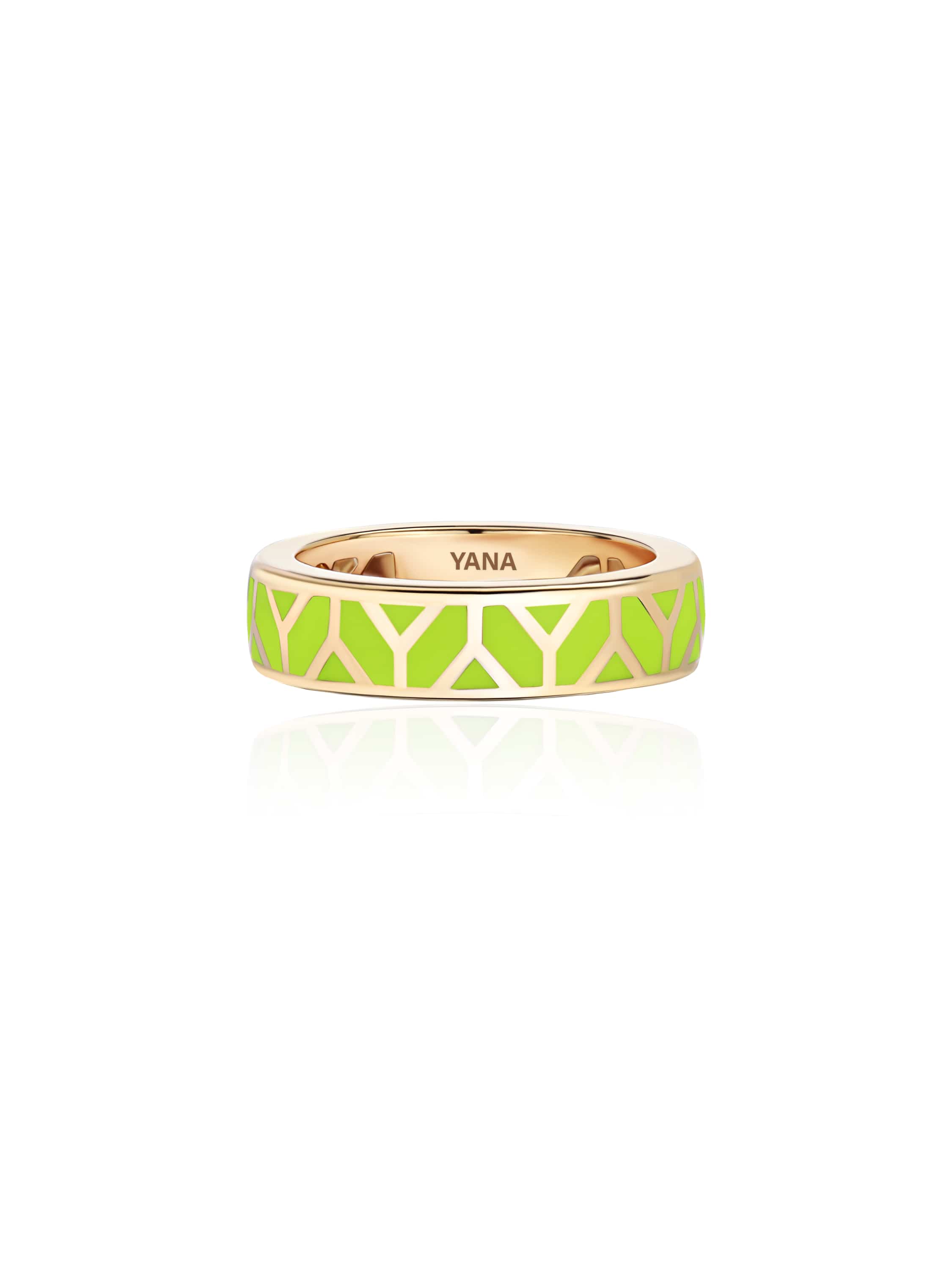 Yellow gold ring with Lime-colored enamel.