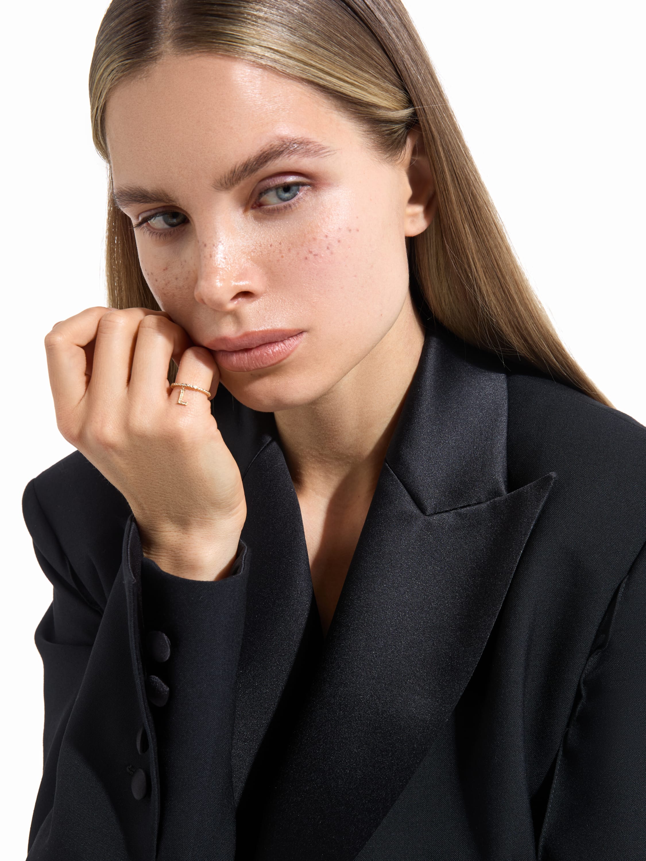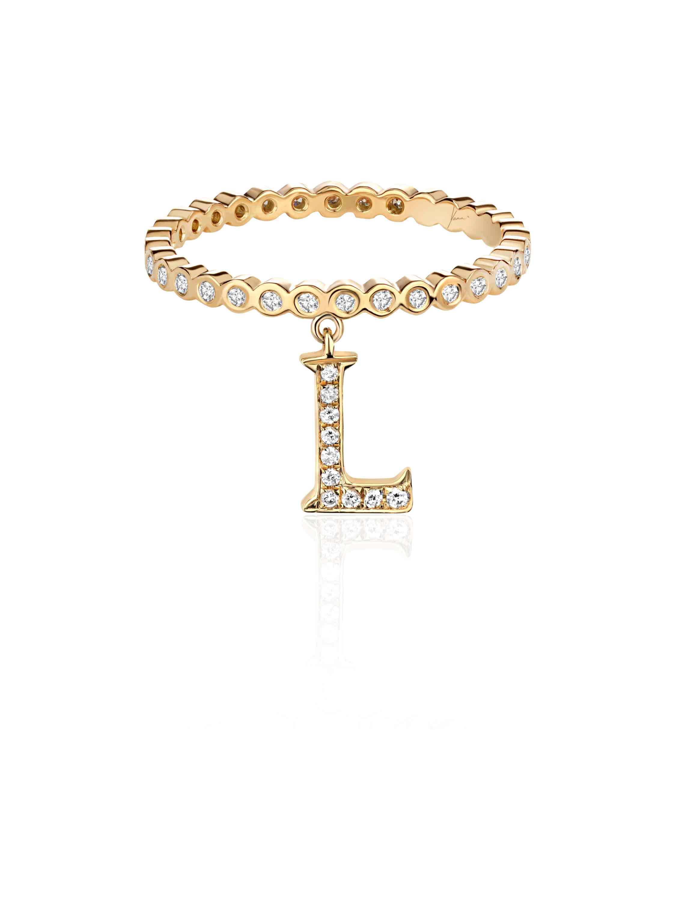 Yellow gold ring with an L letter pendant with 42 diamonds weighing 0.16 ct.