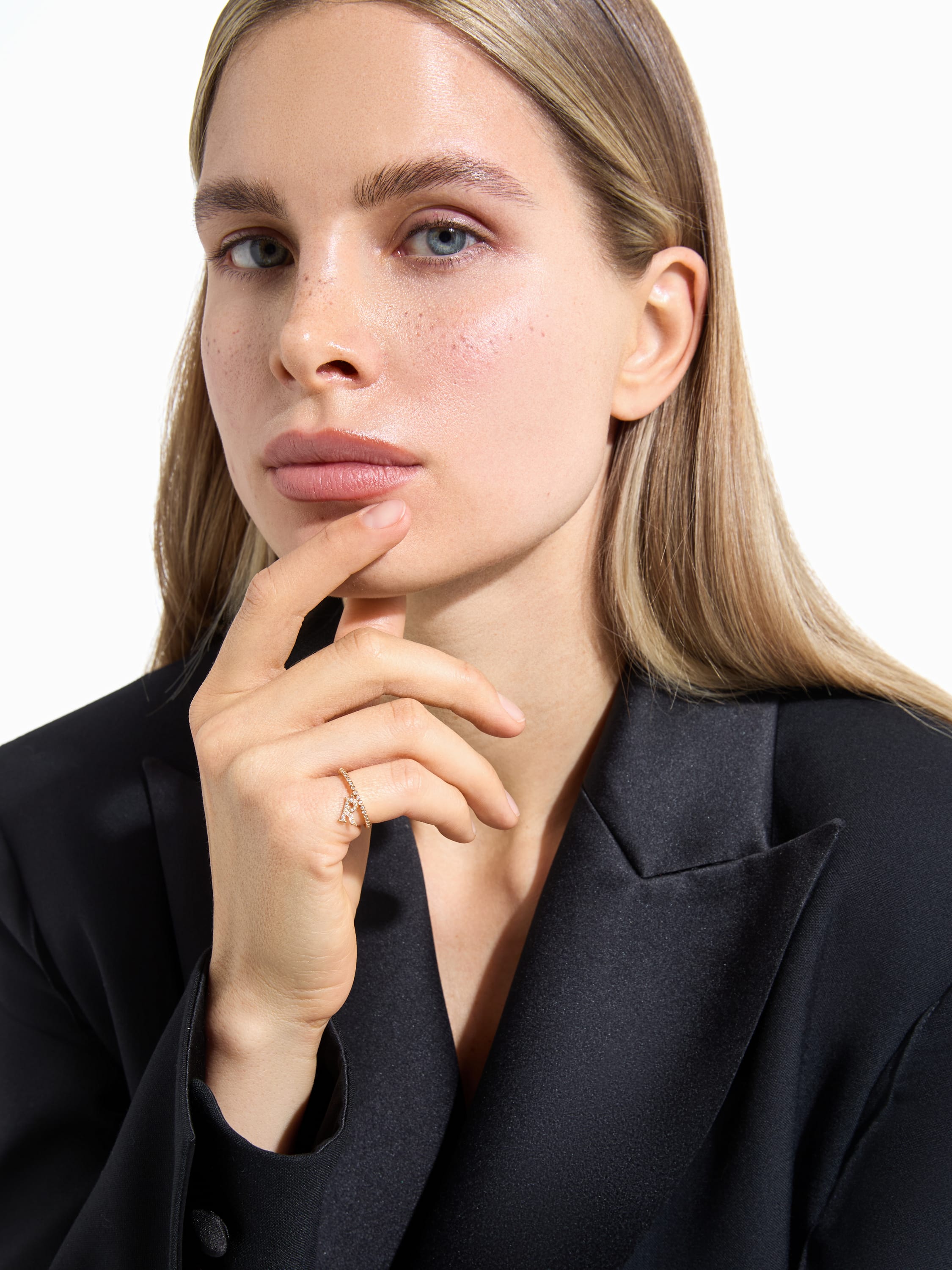 Round Diamond & Gold "R" Letter Ring
