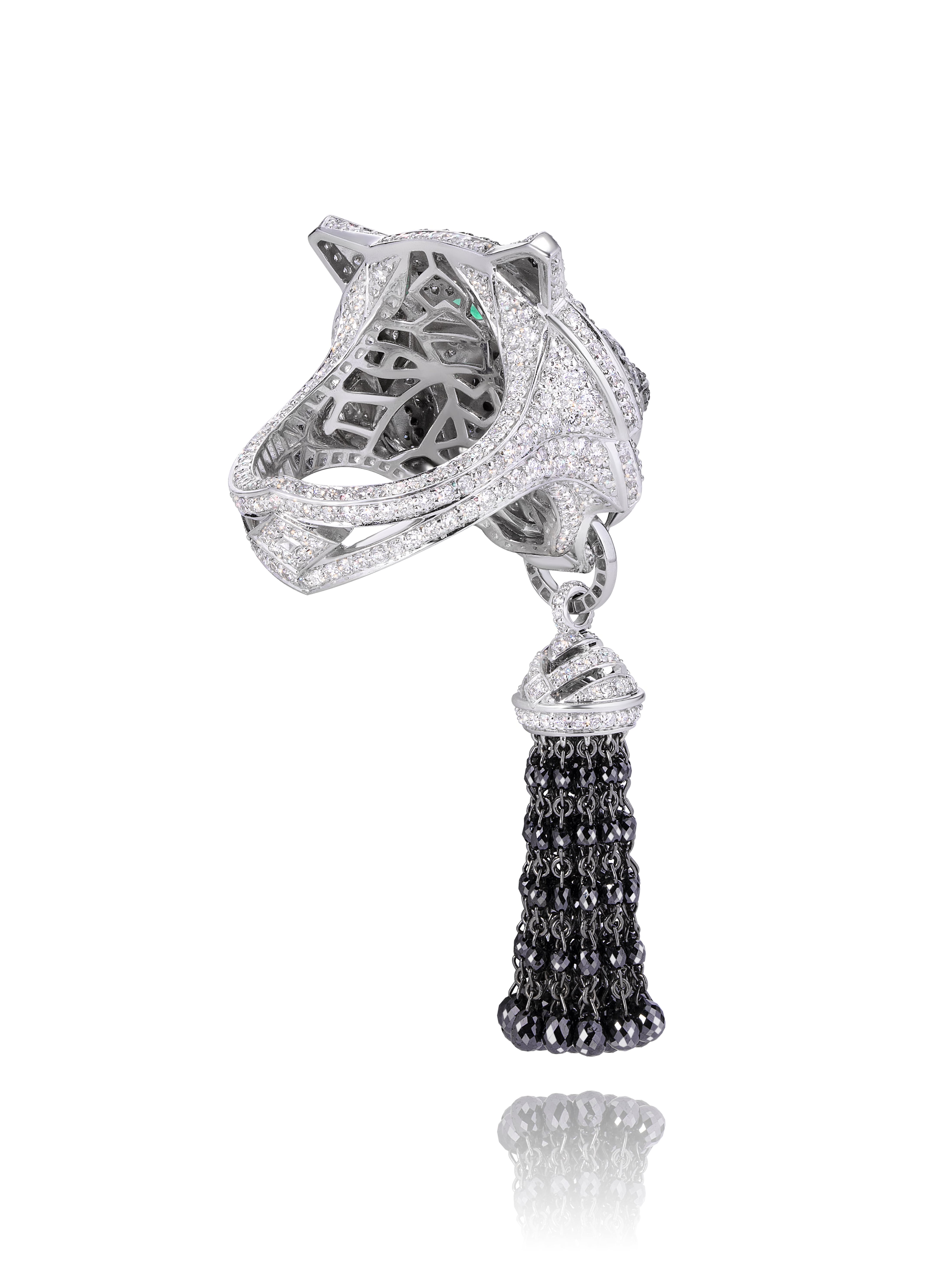 White Gold & Diamond Tiger Tassel Ring