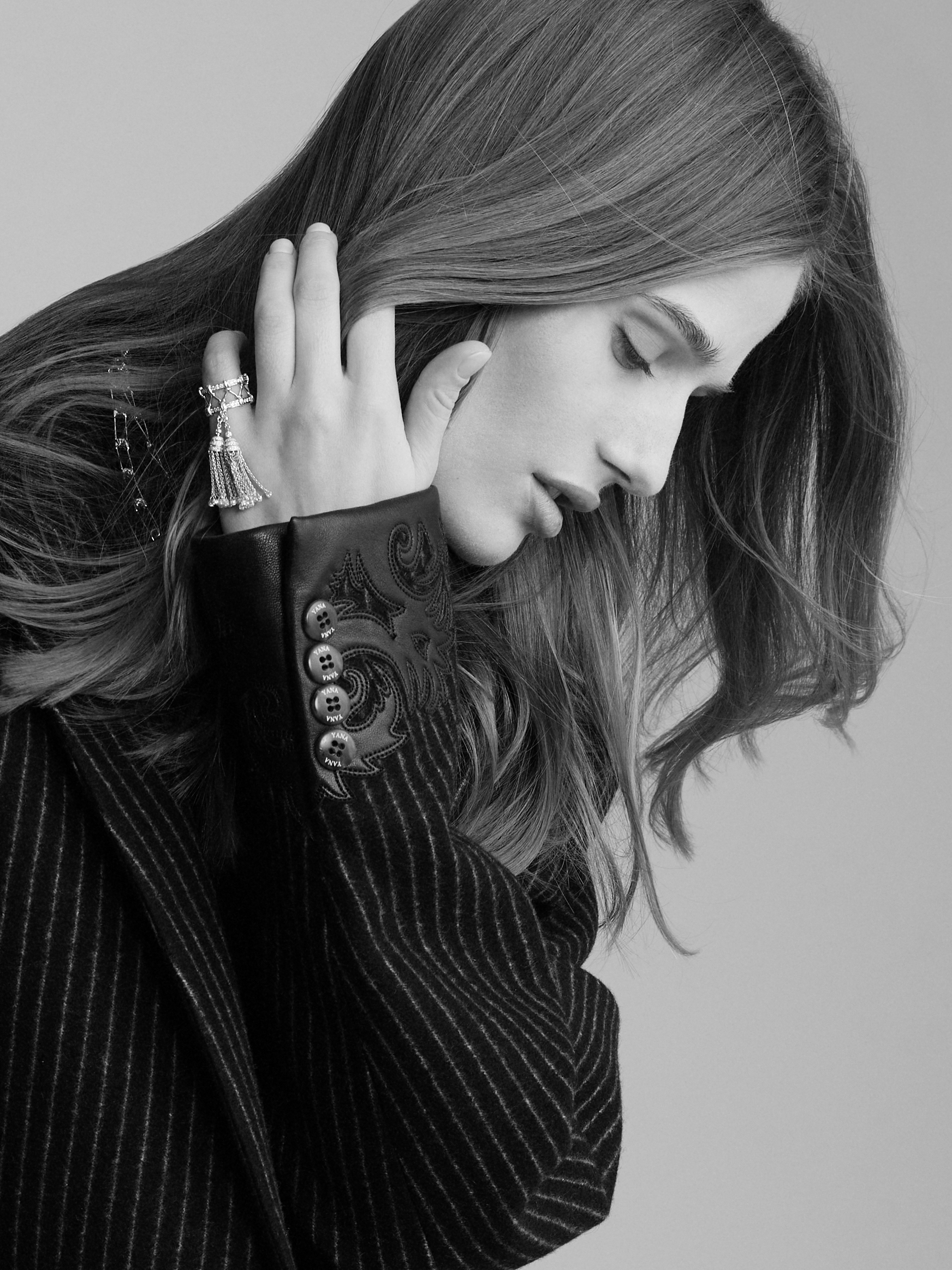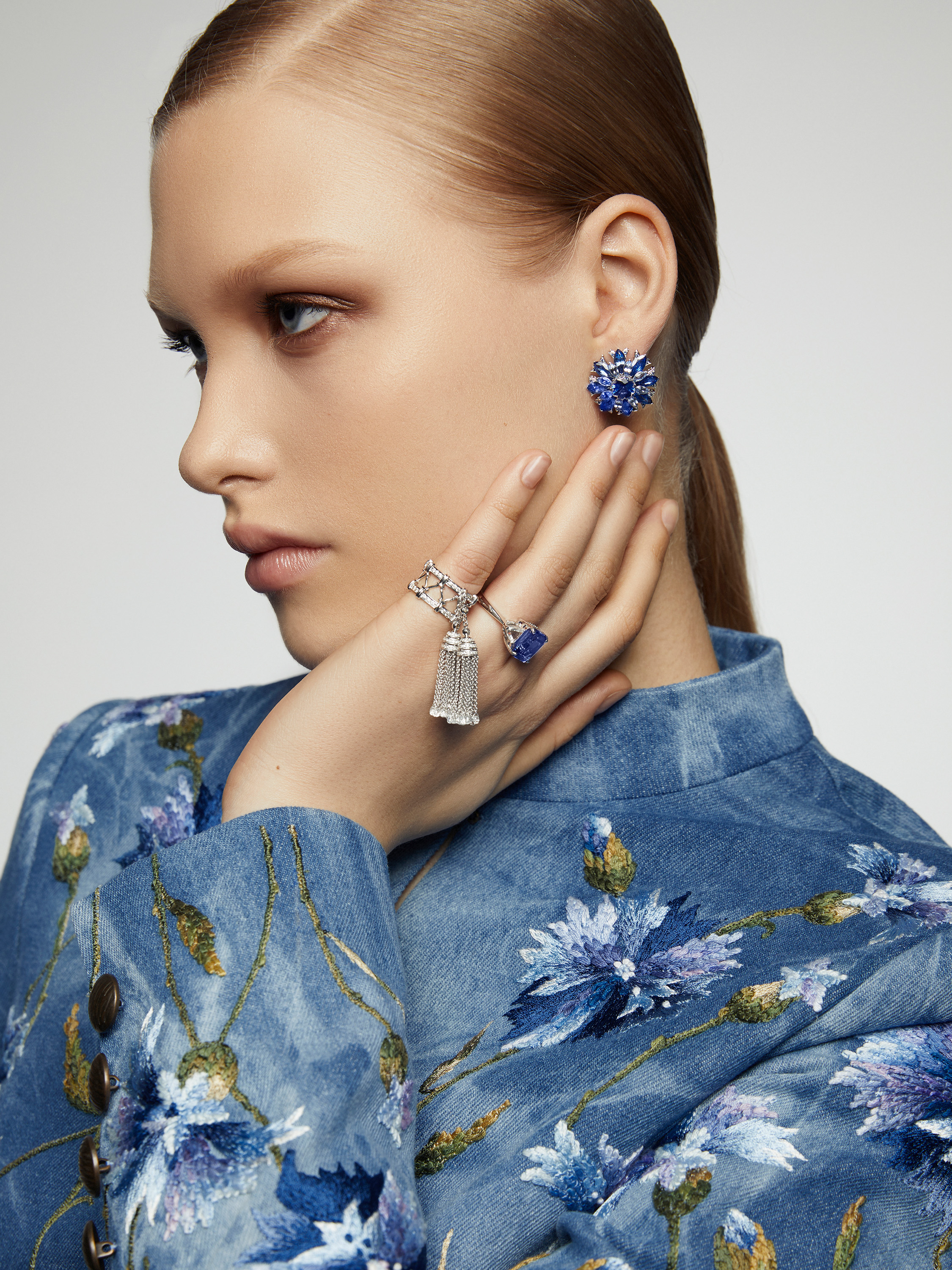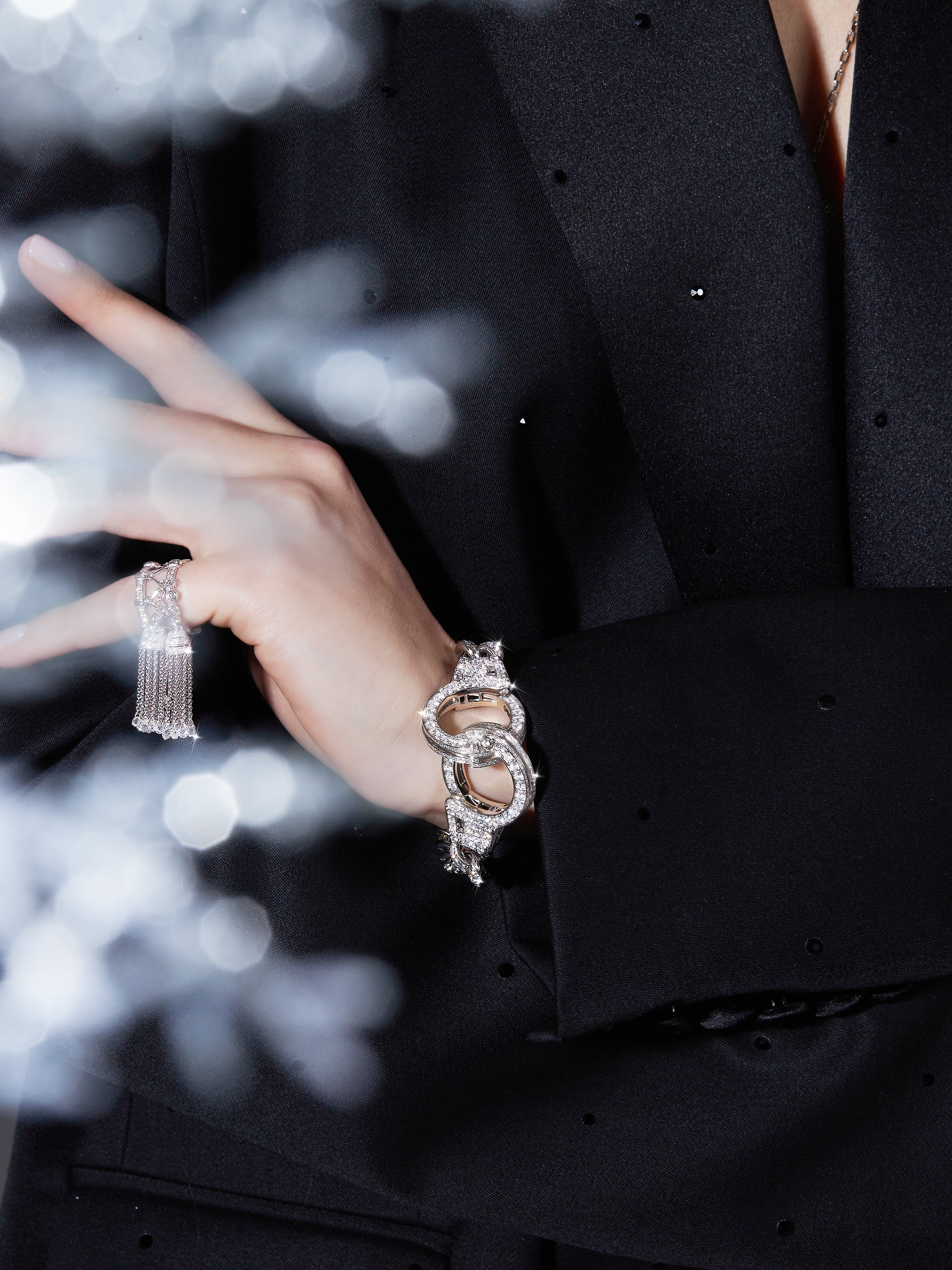 Brush ring made of white gold with 30 briolettes with a total weight of 2.88 ct and 145 round diamonds with a total weight of 0.76 ct.