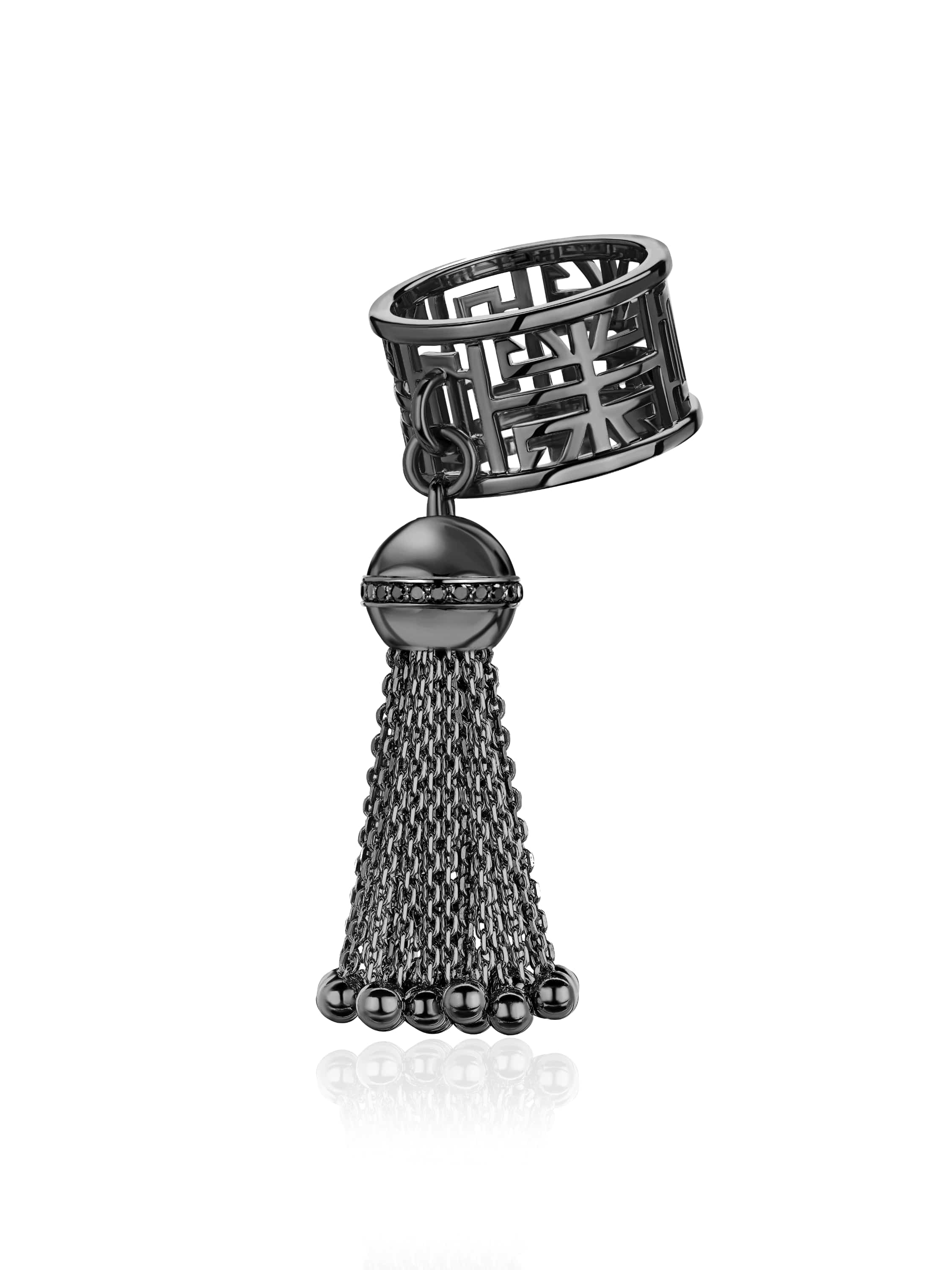 Blackened 585 gold hand ring with 23 black diamonds weighing 0.11 ct.