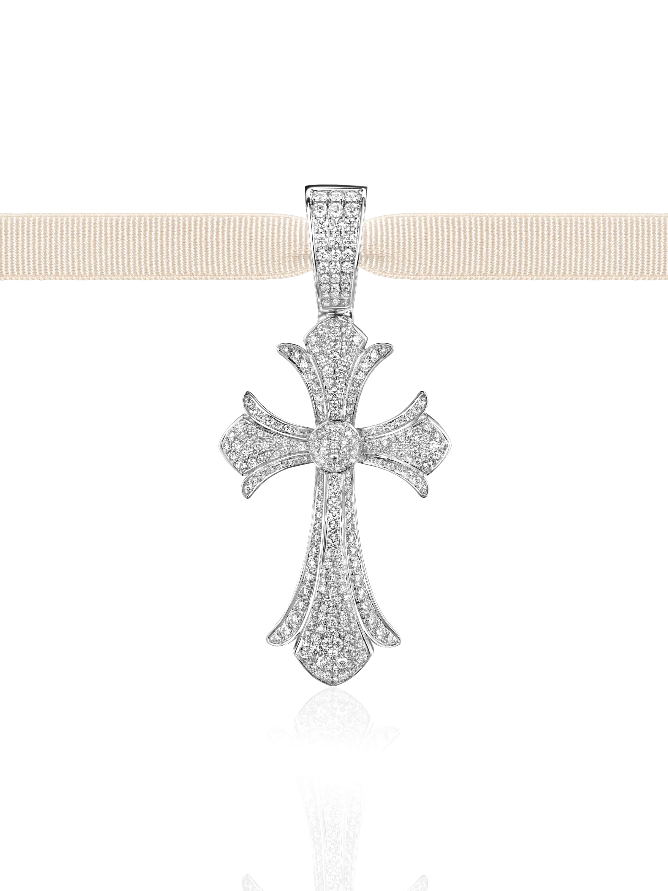 White gold cross-shaped pendant with 272 round-cut diamonds weighing 2.45 ct.