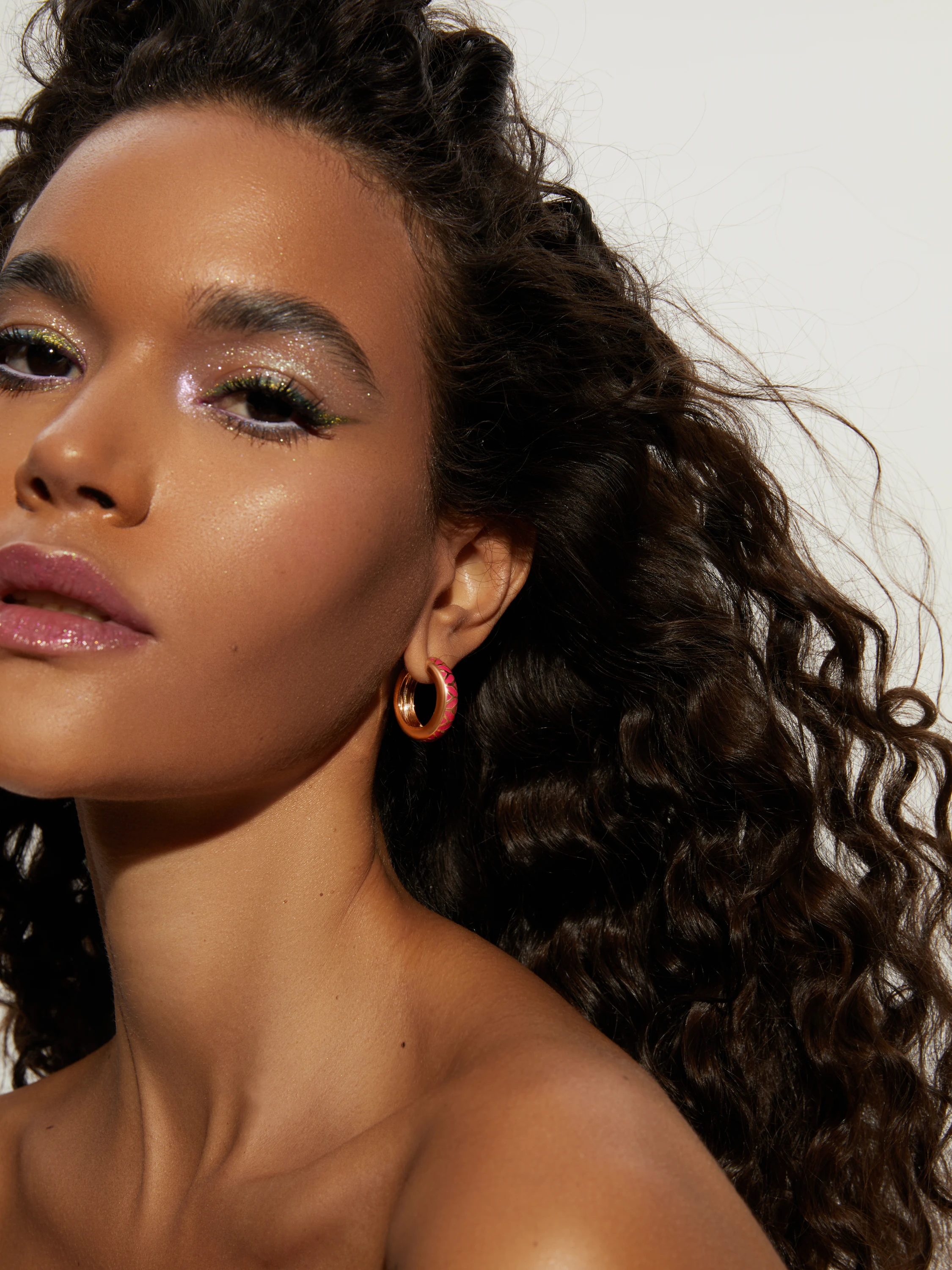 Small rose gold hoops with pink enamel