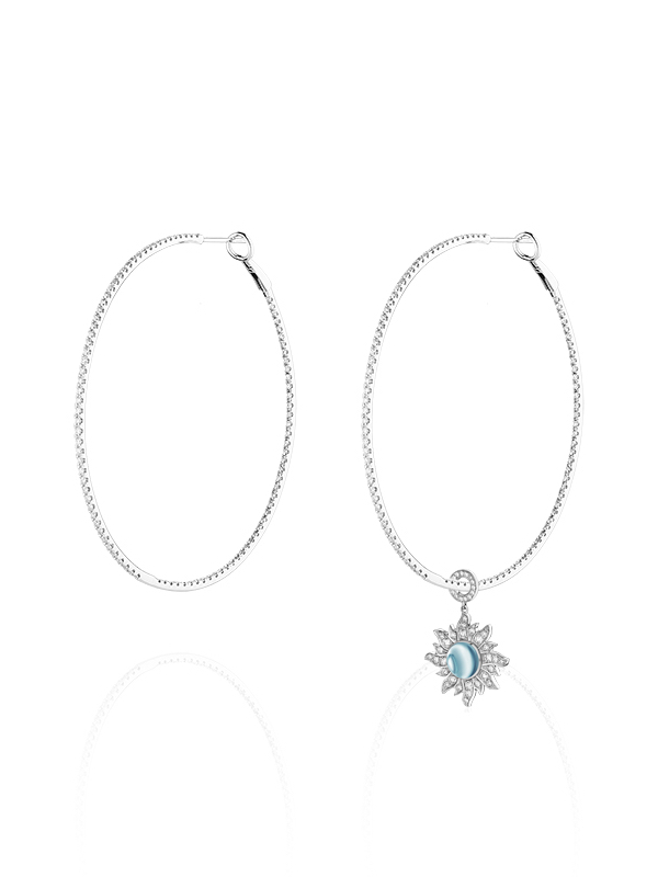Hoop earring charm in white gold with 43 round-cut diamonds with a total weight of 0.47 ct and a Sky Blue topaz cabochon weighing 1.74 ct.