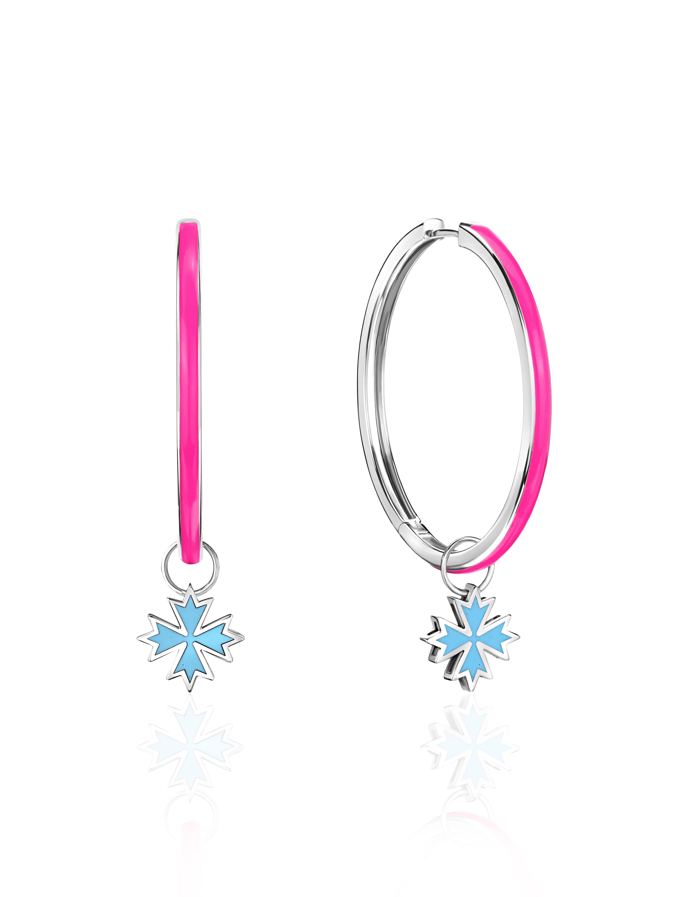 Pendant for hoops in white gold with a cornflower made of light blue enamel.