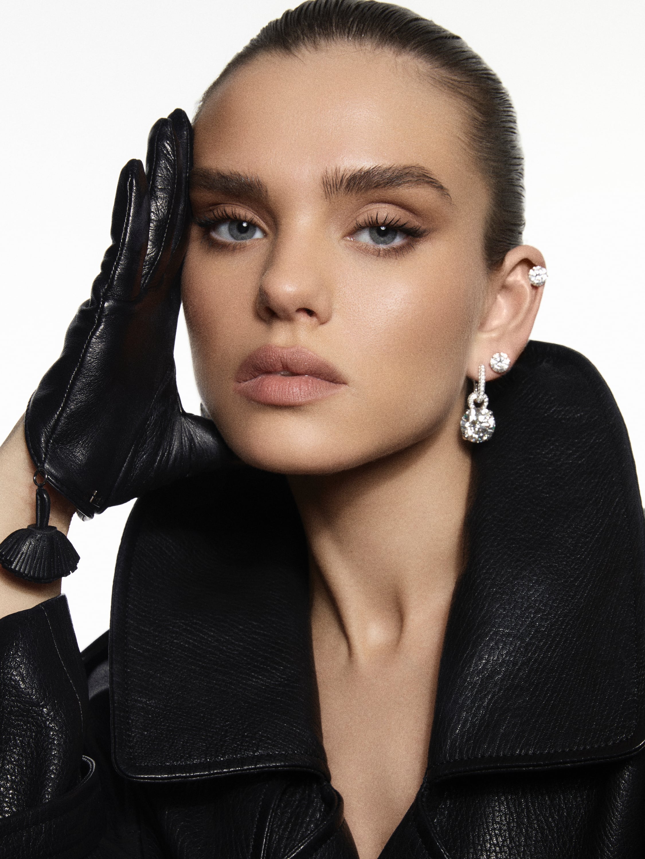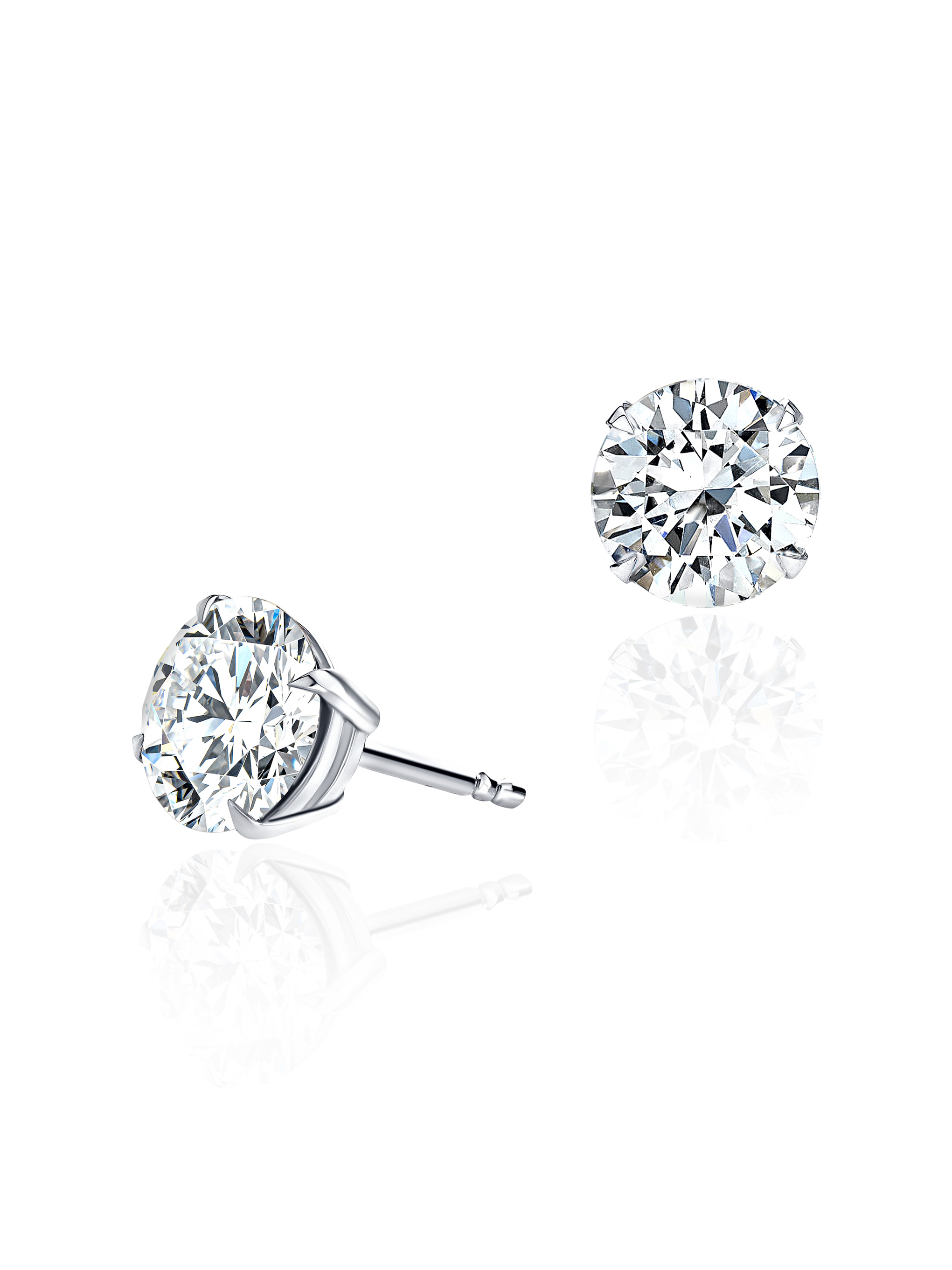 White gold stud earrings with 2 round-cut cubic zirconias with a total weight of 10.34 ct.