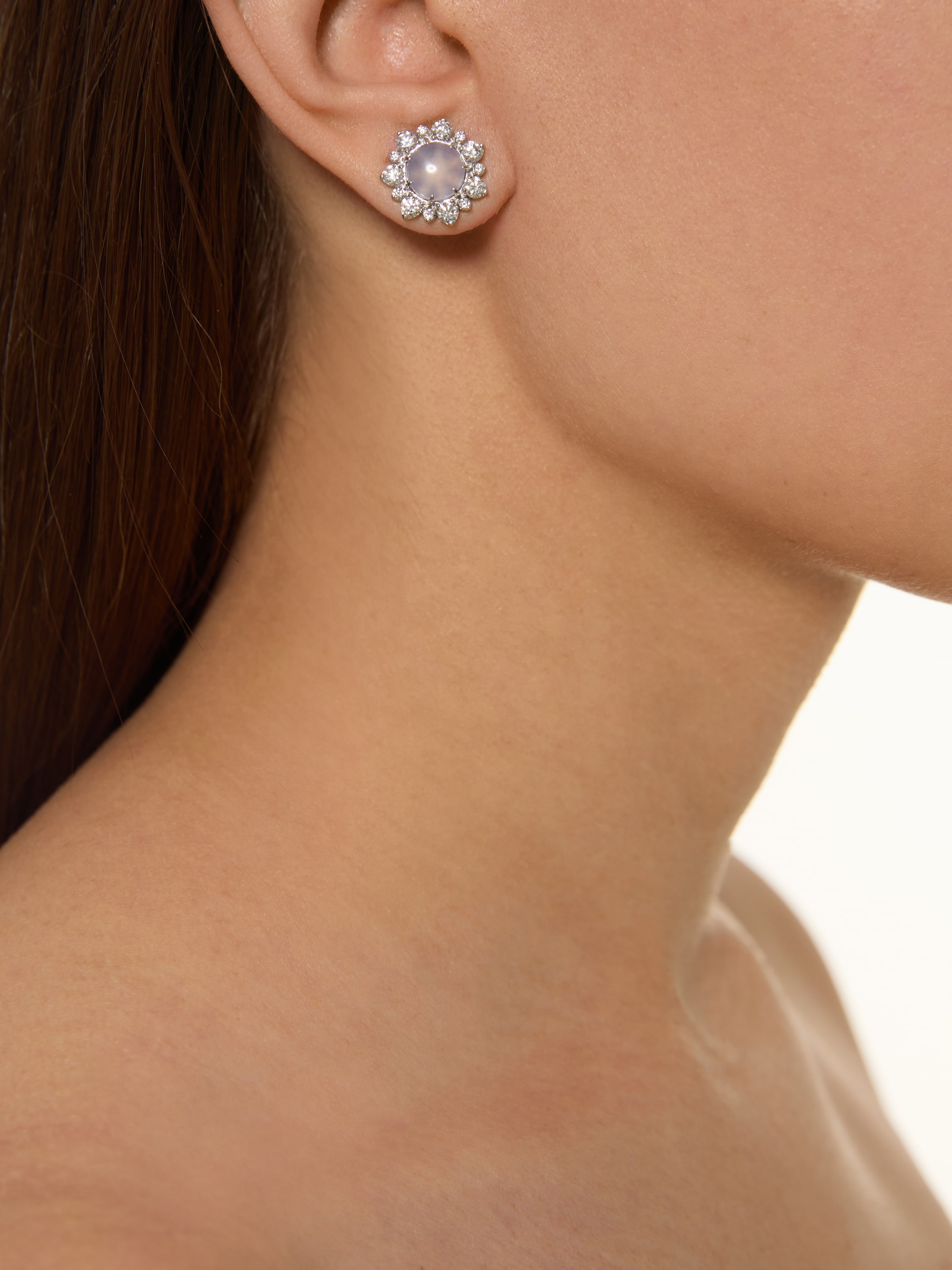 White gold stud earrings with 2 chalcedonies 4.41 ct and 28 round diamonds weighing 1.54 ct.