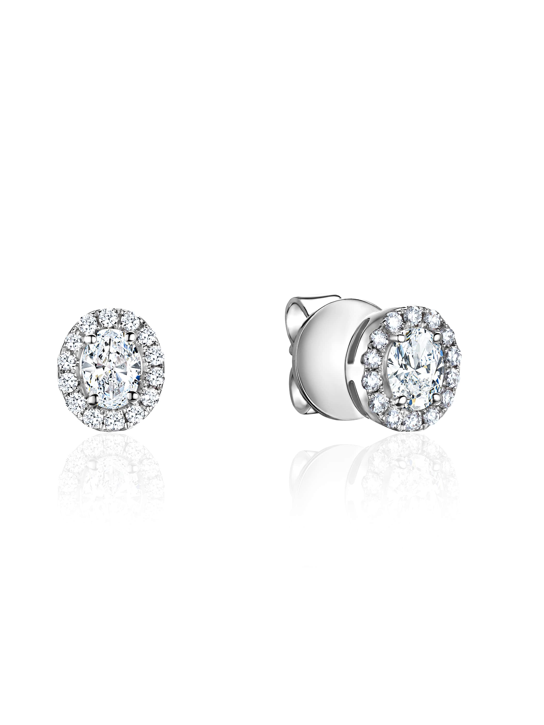 White gold stud earrings with oval and round diamonds