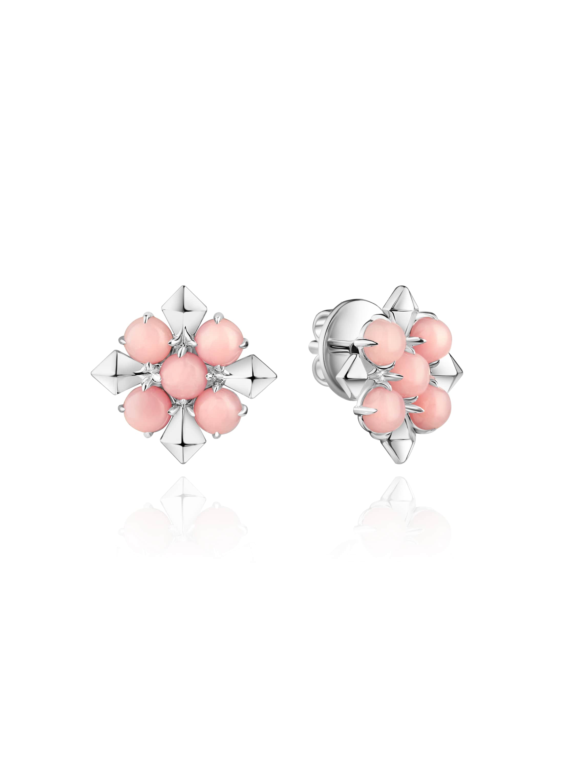 White gold stud earrings with 10 cabochon-cut pink opals weighing 2.27 ct.