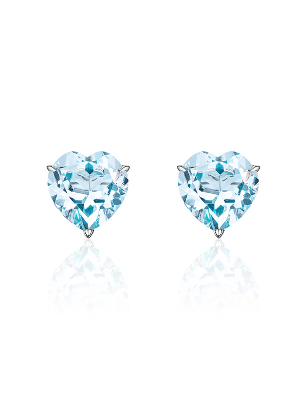 Stud earrings in white gold with 2 Sky topazes of heart cut with a total weight of 5.48 ct.