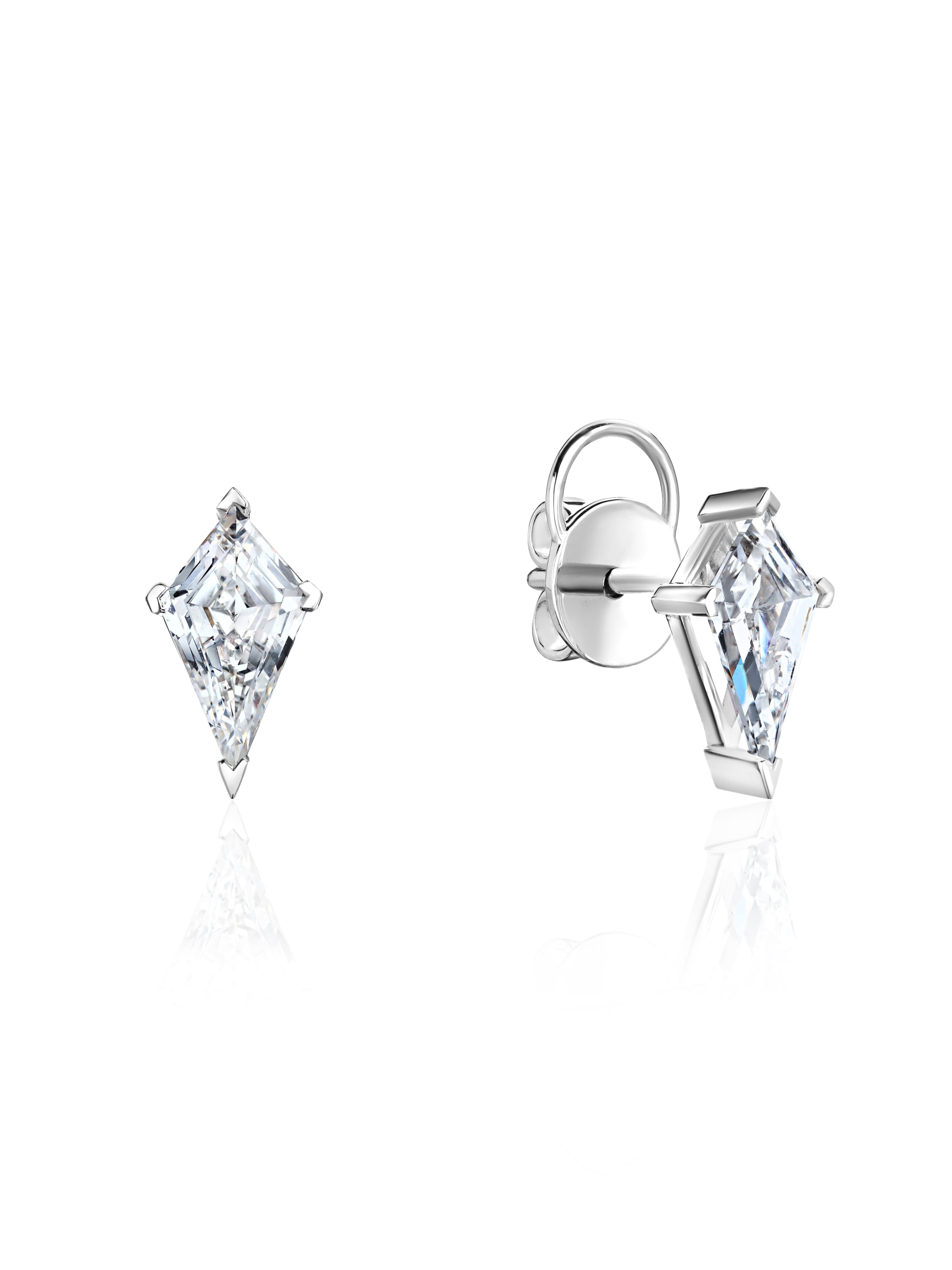 White gold stud earrings with 2 fancy-cut lab-grown diamonds weighing 2.17 ct.