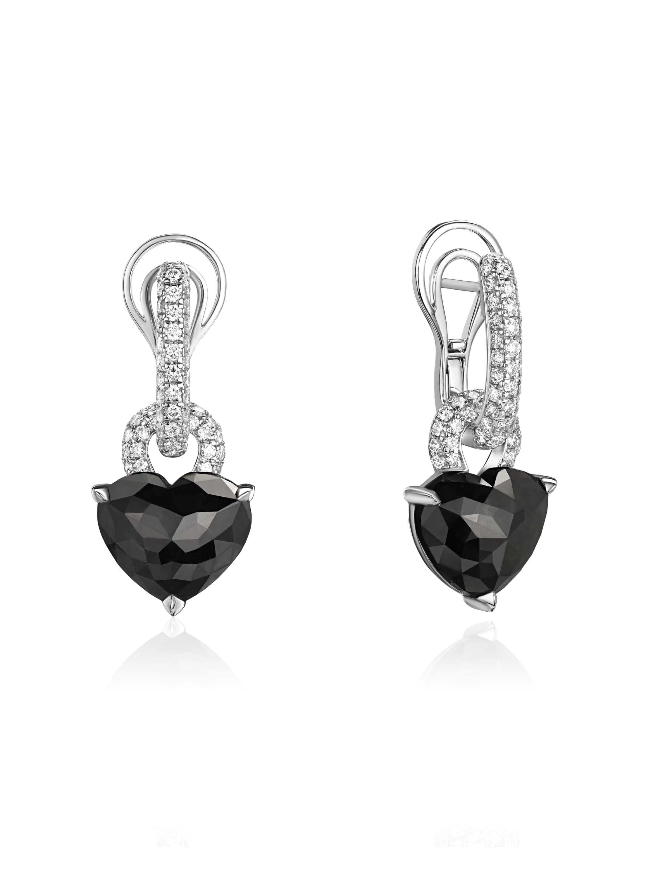 White gold earrings with heart‑cut black diamonds