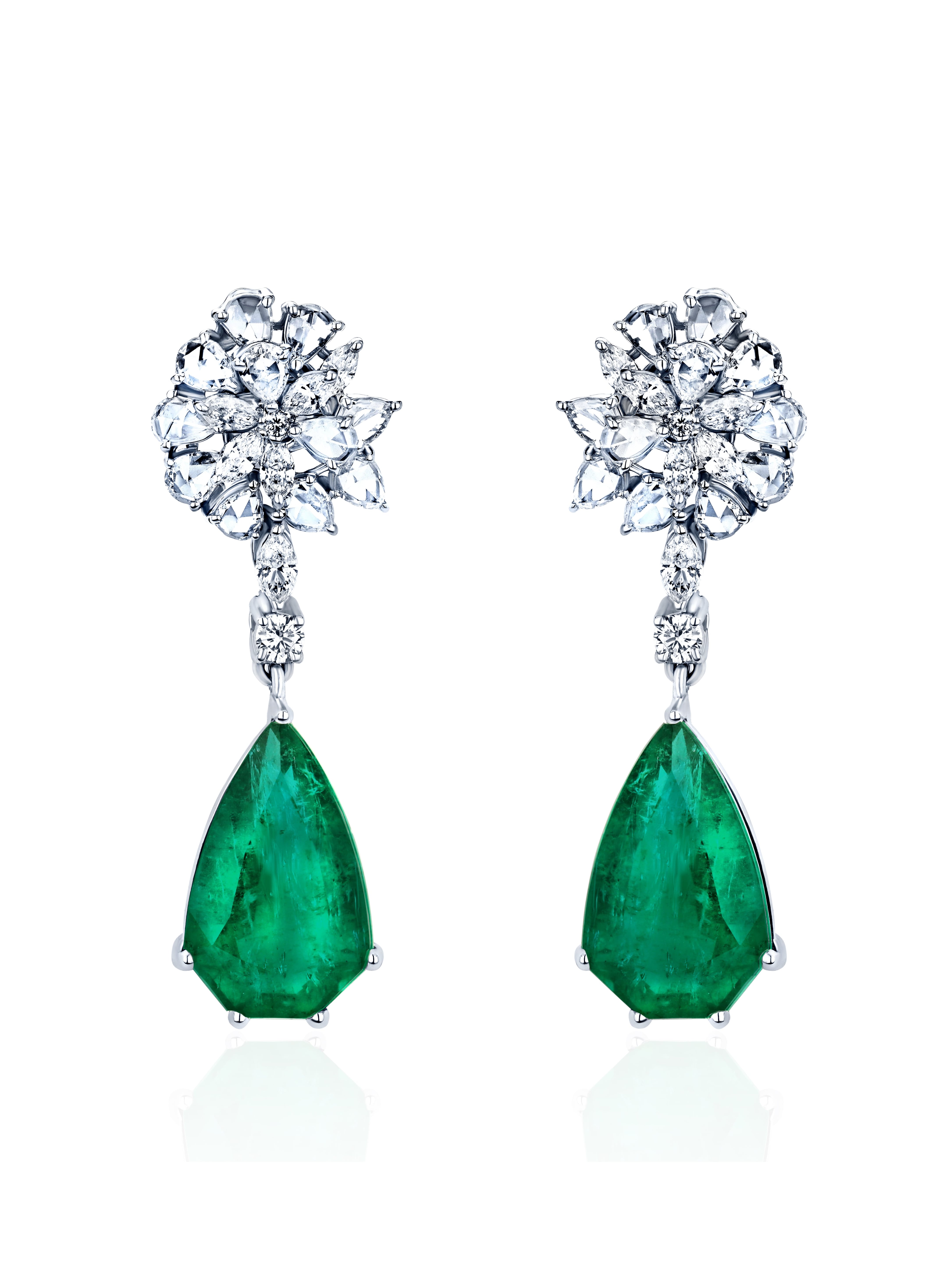 Pear Emerald & Pear Diamond & White Gold Earrings
