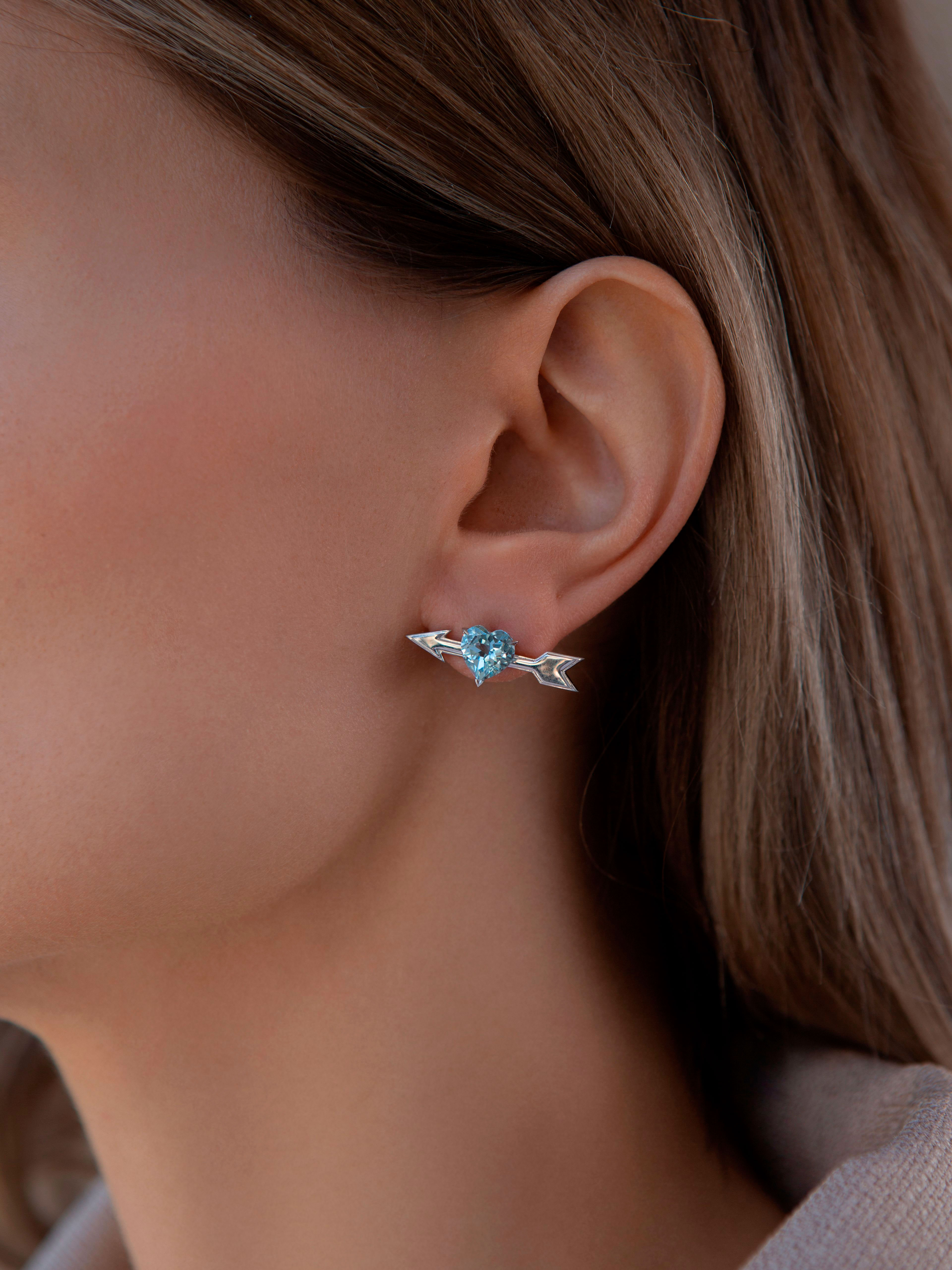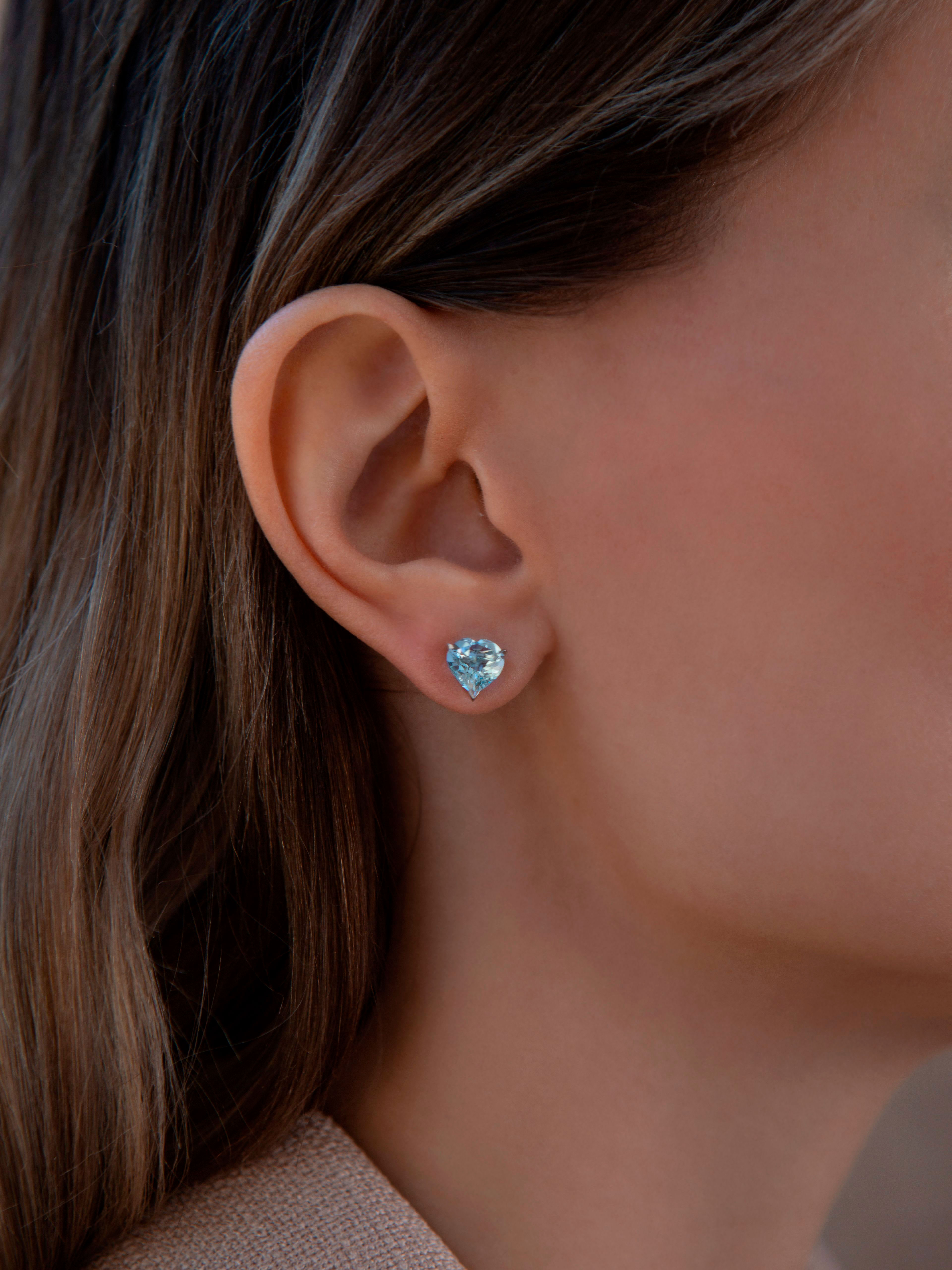 White Gold & Heart-cut Topaz Mismatched Studs