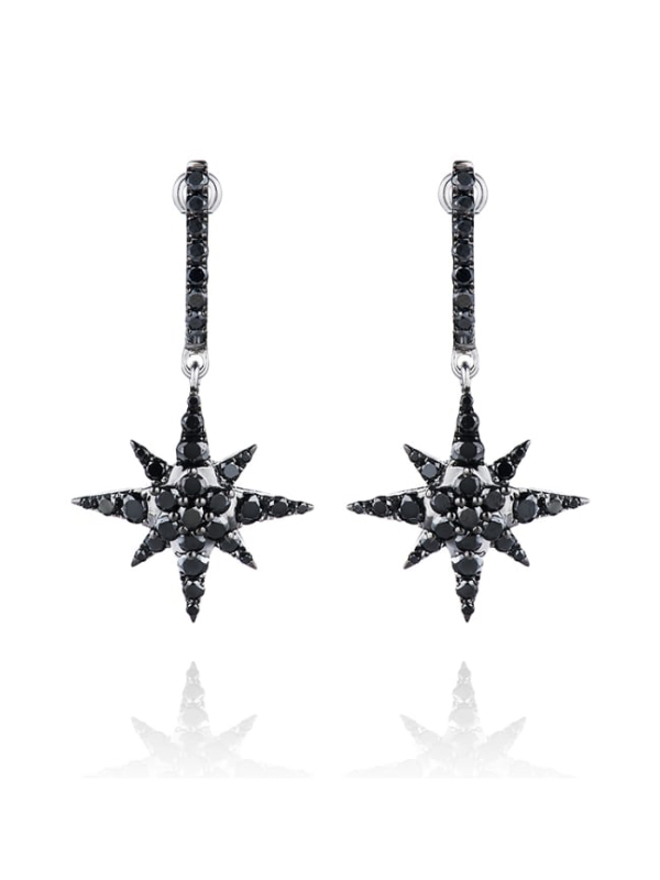 Earrings in blackened gold with 70 round black diamonds with a total weight of 1.14 ct.