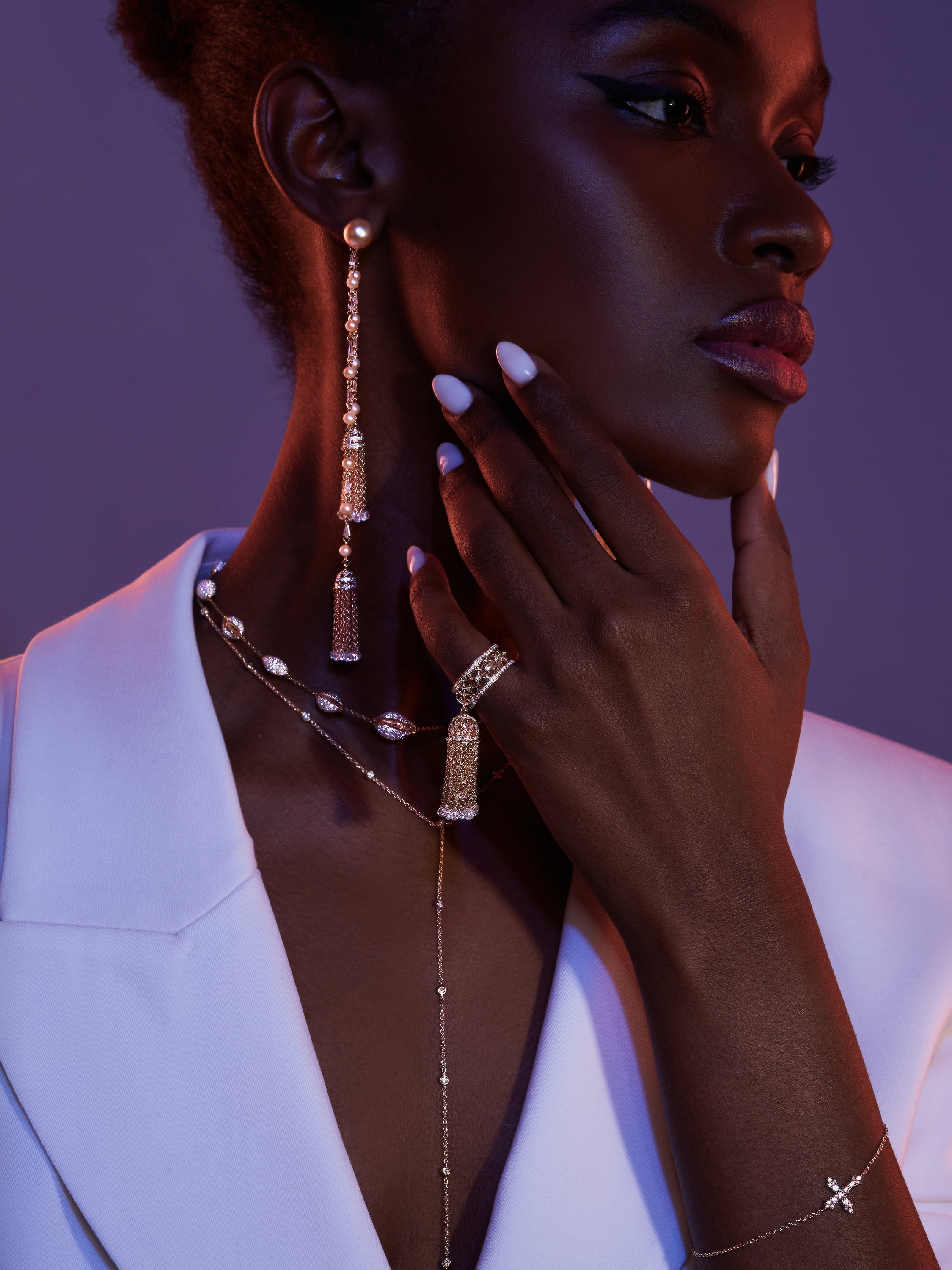 Round, Briolette, Fancy Diamond, Golden Pearl & Gold Tassel Earrings