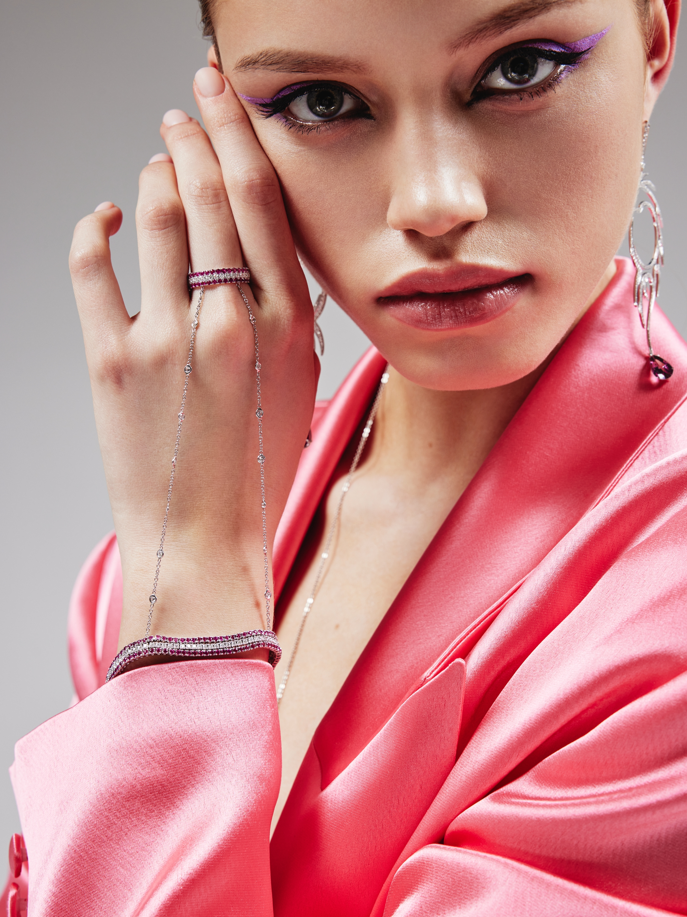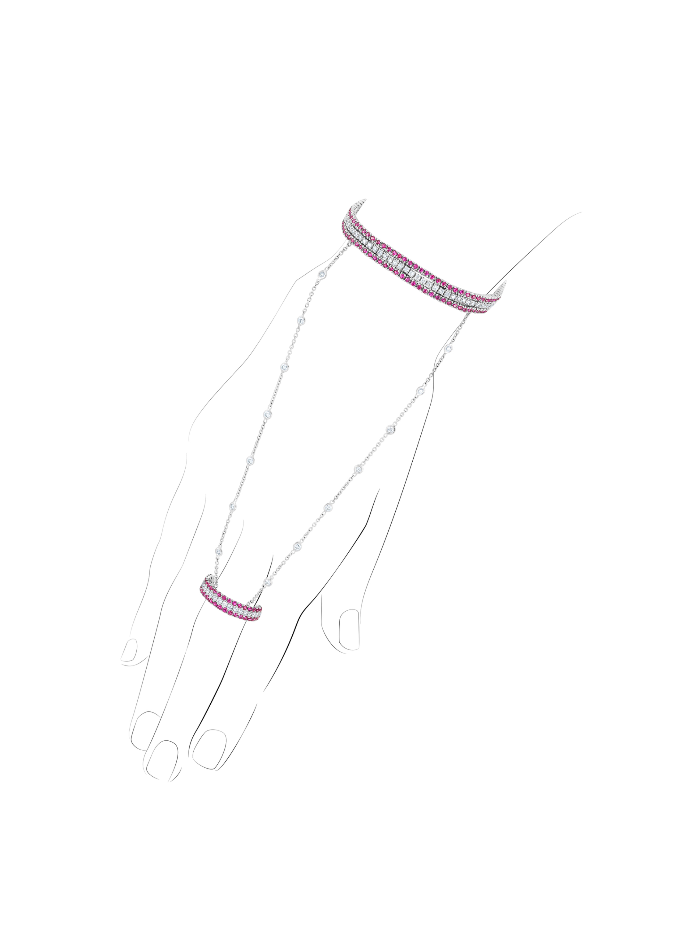 Slave bracelet in white gold with 174 rubies with a total weight of 3.28 ct and 138 round-cut diamonds with a total weight of 1.95 ct.