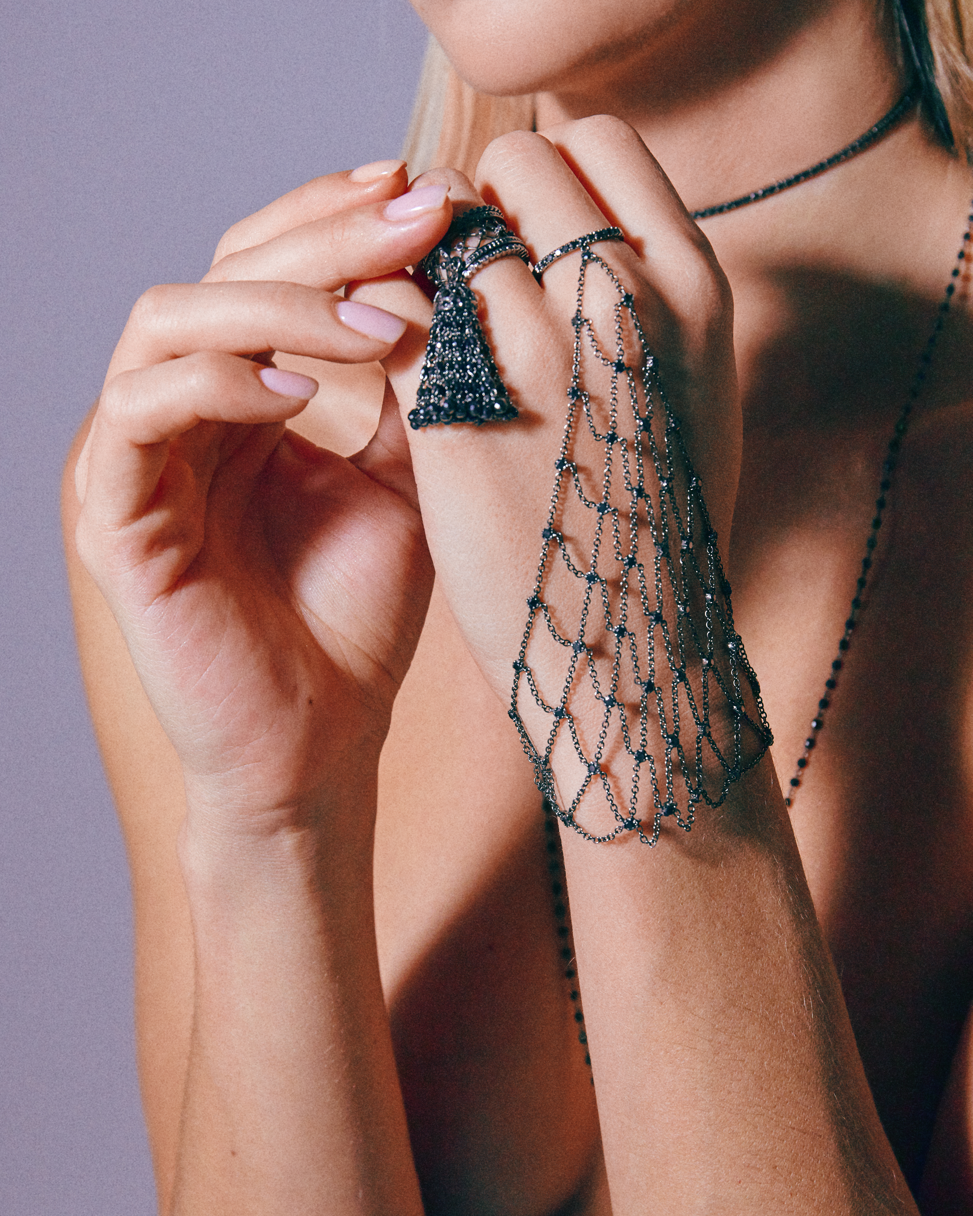 Slave bracelet made of oxidized gold with 99 black round-cut diamonds with a total weight of 2.27 ct.
