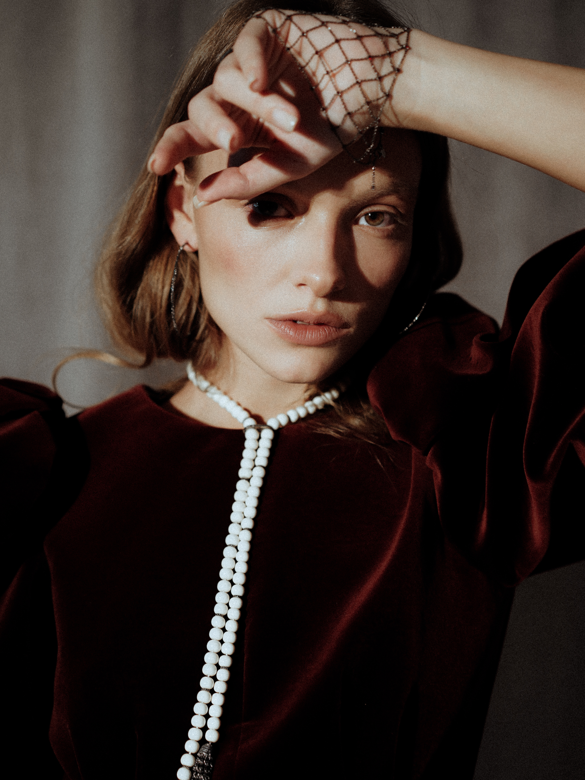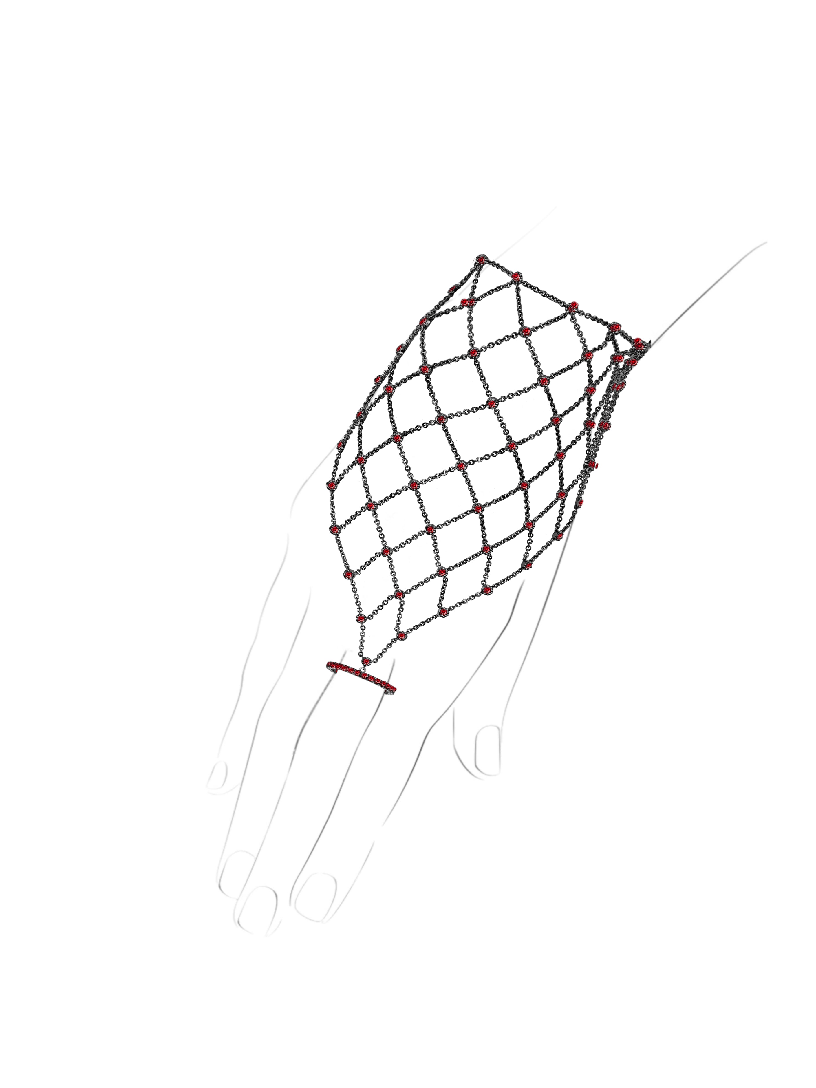 Slave bracelet made of 585 oxidized gold with 113 round garnets with a total weight of 3.37 ct.