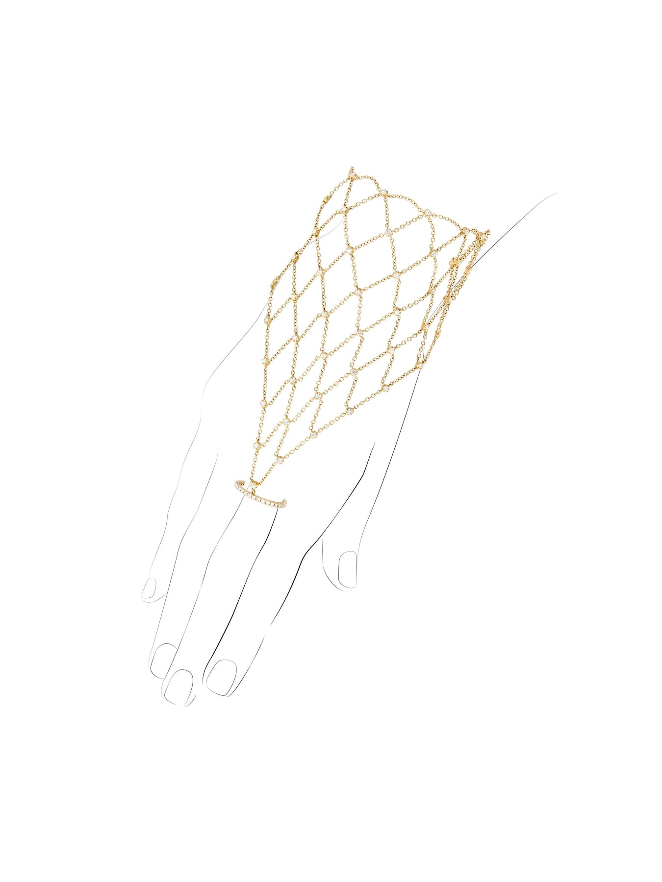 Slave bracelet in yellow gold with 110 colorless round-cut topazes with a total weight of 2.95 ct.