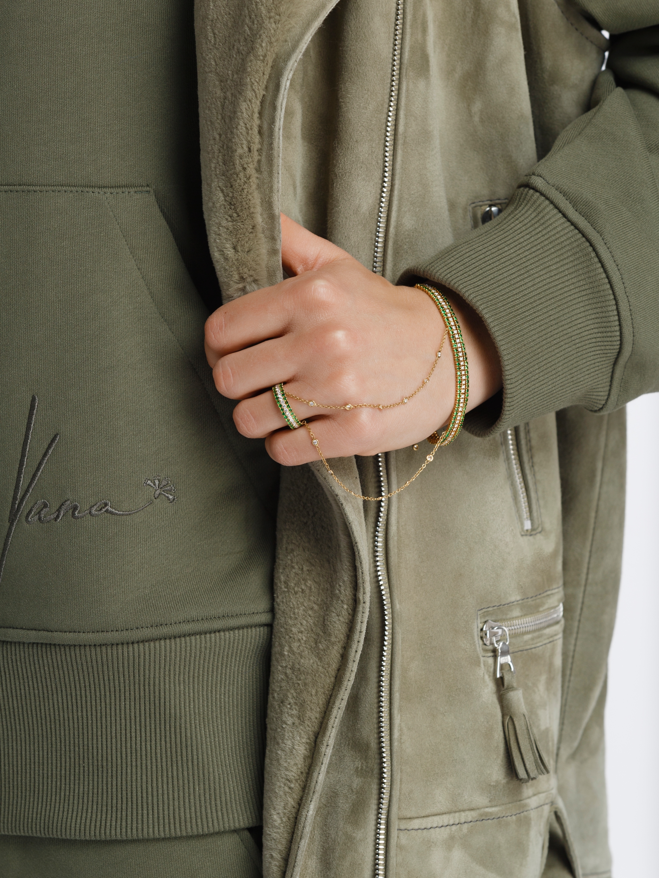 Yellow Gold, Diamonds & Emeralds Slave Bracelet