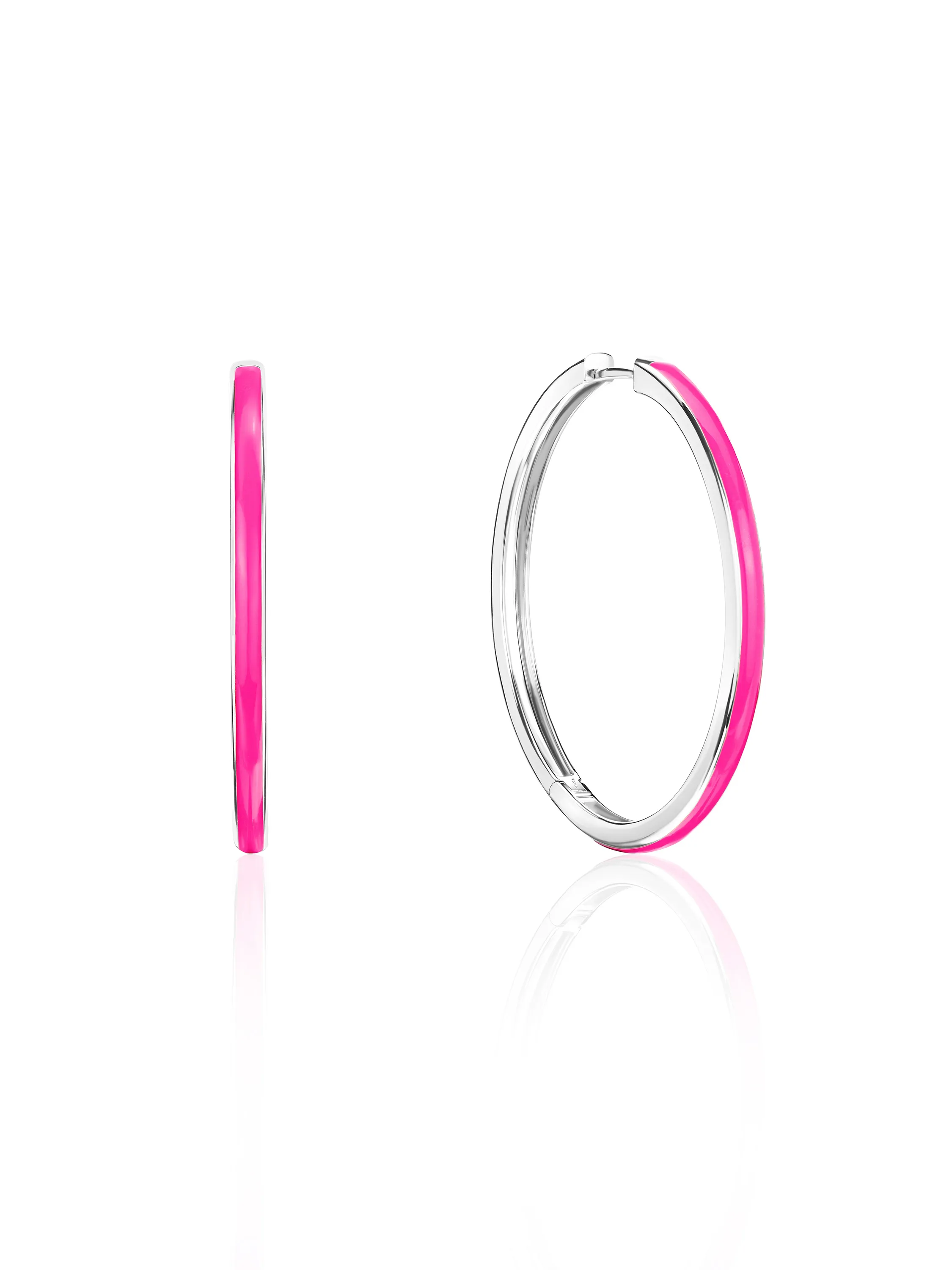 White gold hoops with pink enamel. Diameter: 4 cm.