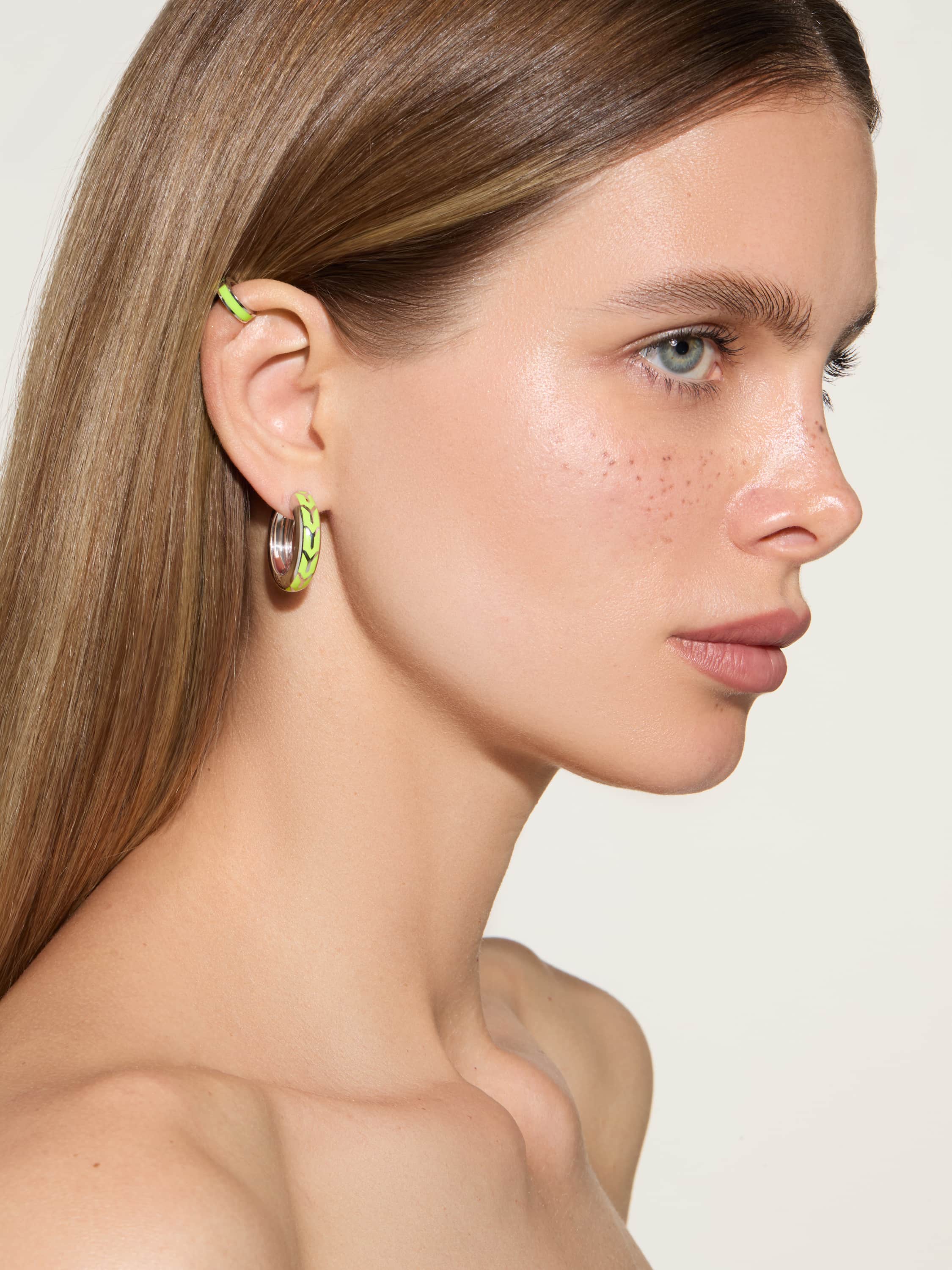 Narrow white gold ear cuff with Lime enamel