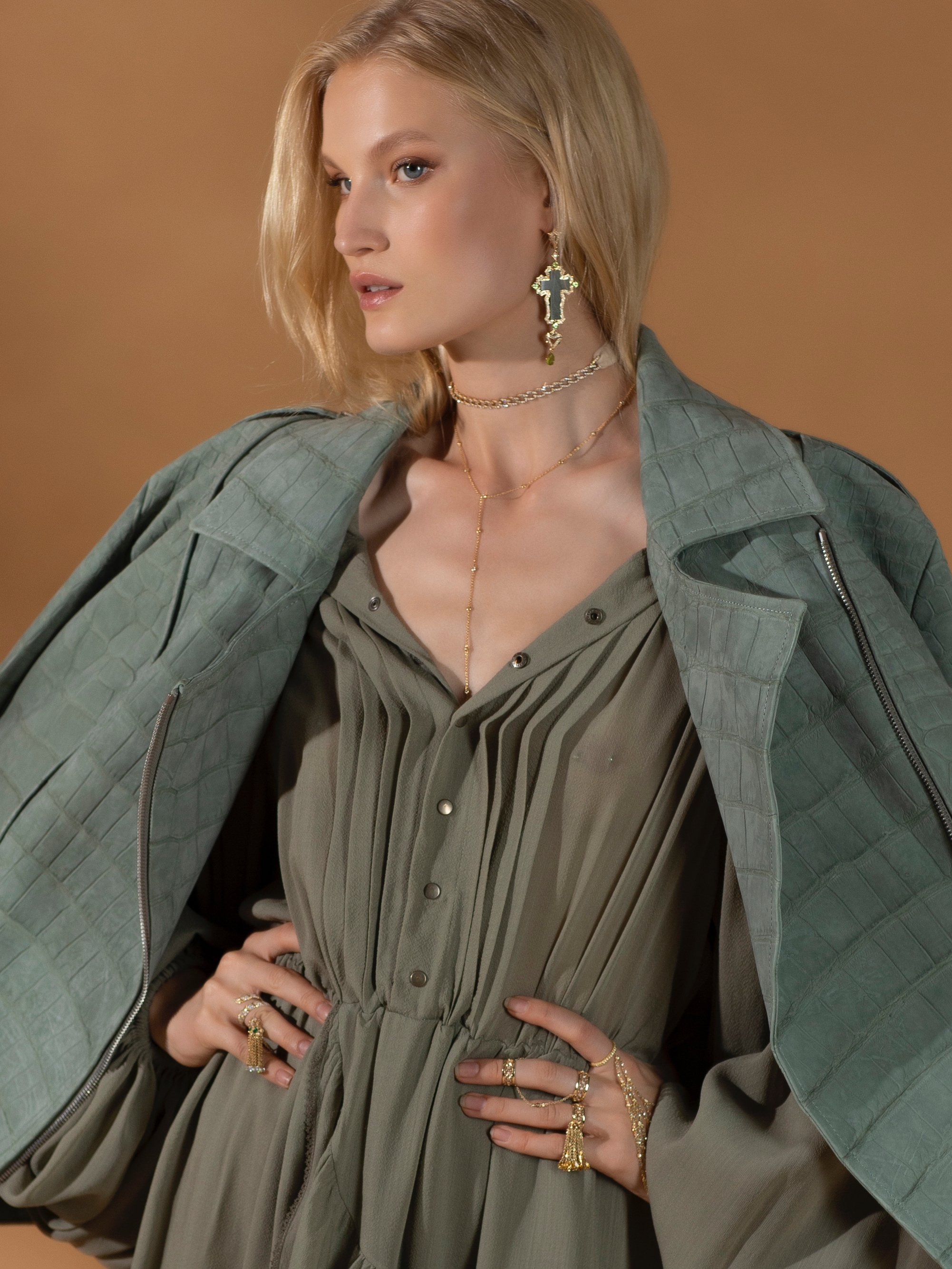 Tassel ring in 585 yellow gold, inlaid with 16 round citrines 0.11 ct and 25 pear-cut citrines 3.74 ct.