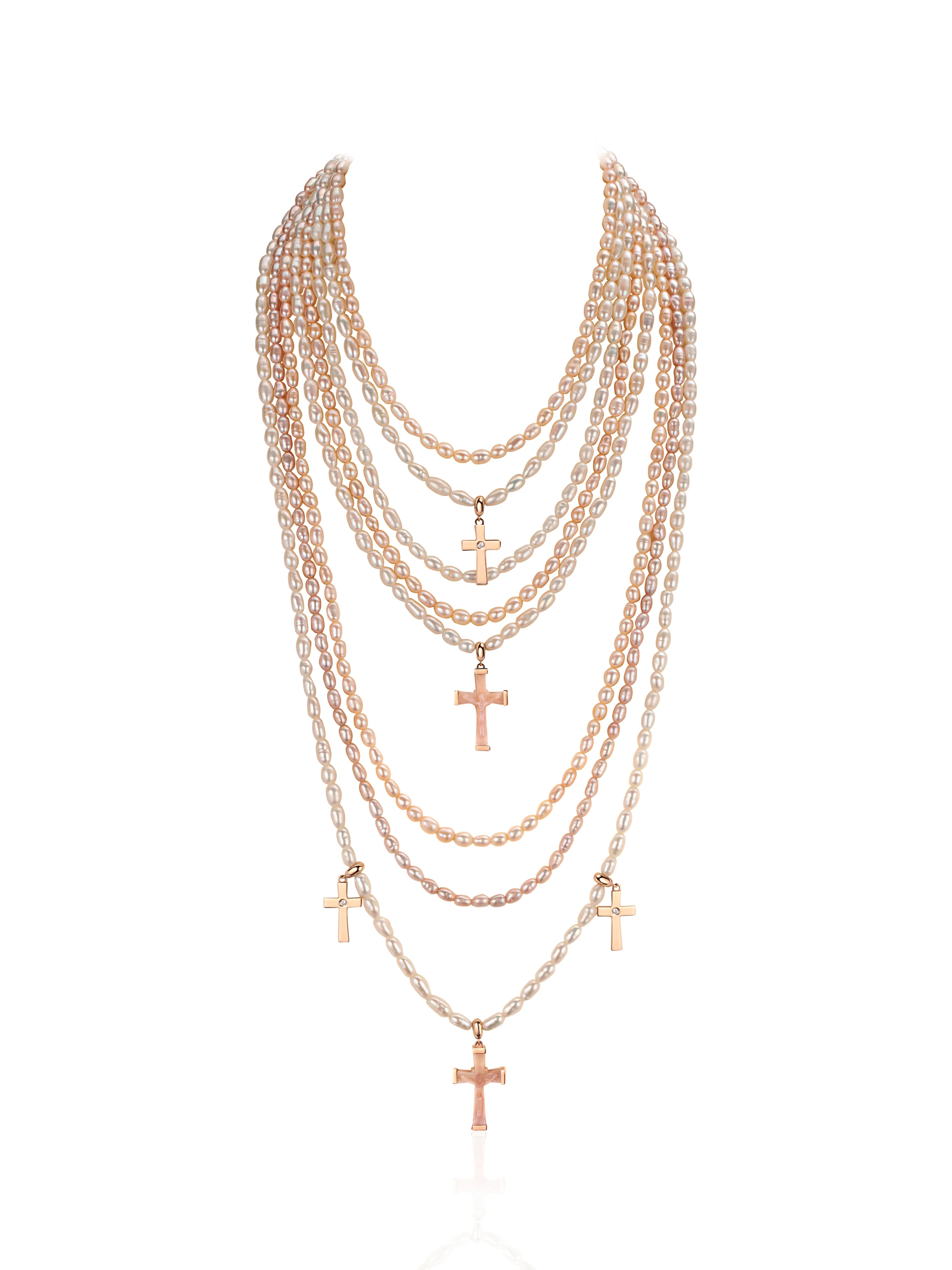 Gold-plated silver necklace with 611 pearl beads with a total weight of 98.13 g, 2 mother-of-pearl elements with a total weight of 1.99 g and 3 cubic zirconias with a total weight of 0.2 ct.