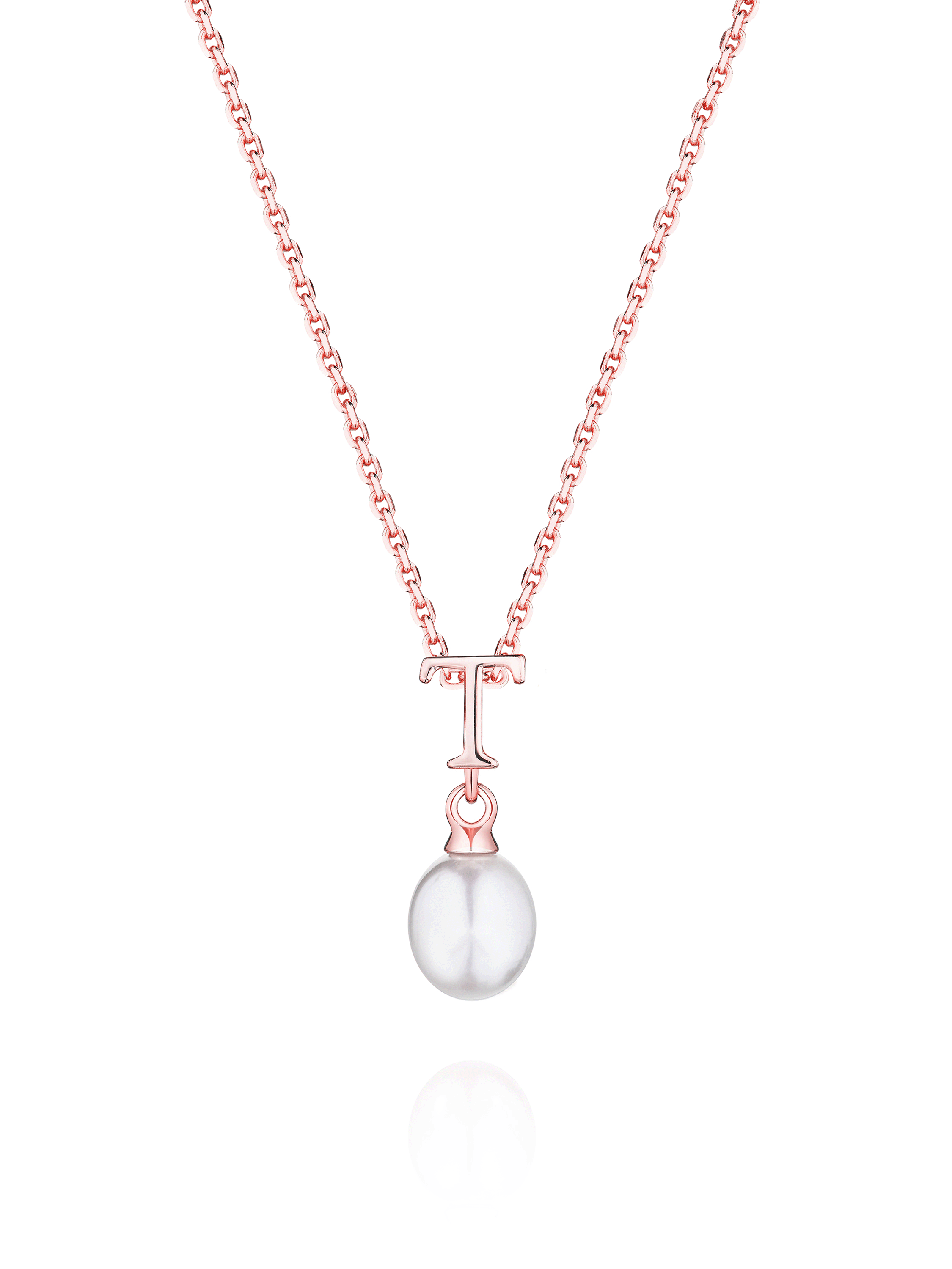 Gold-plated silver necklace with a pendant with the letter T and a pearl