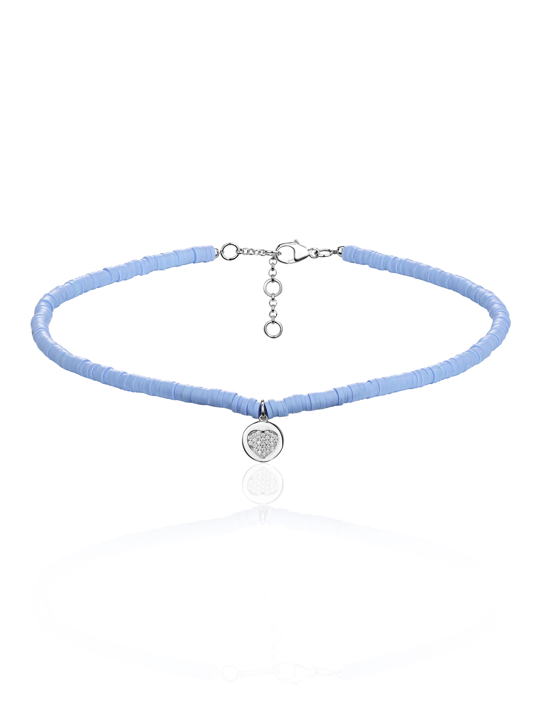 Purple rubber choker necklace with a pendant made of silver and cubic zirconia