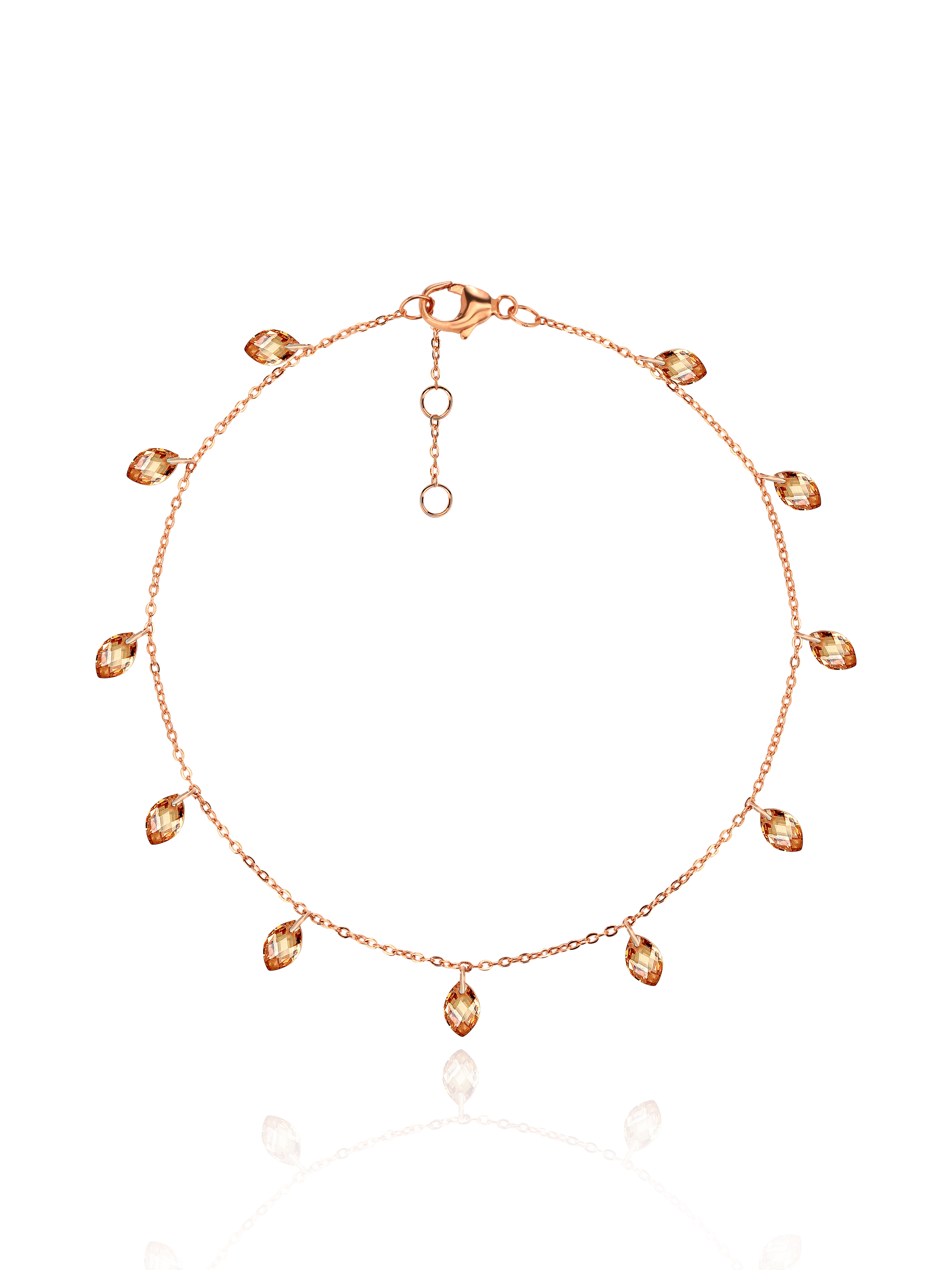 A delicate chain bracelet made of gold-plated silver and complemented by orange cubic zirconia charms in a “Marquise” cut.