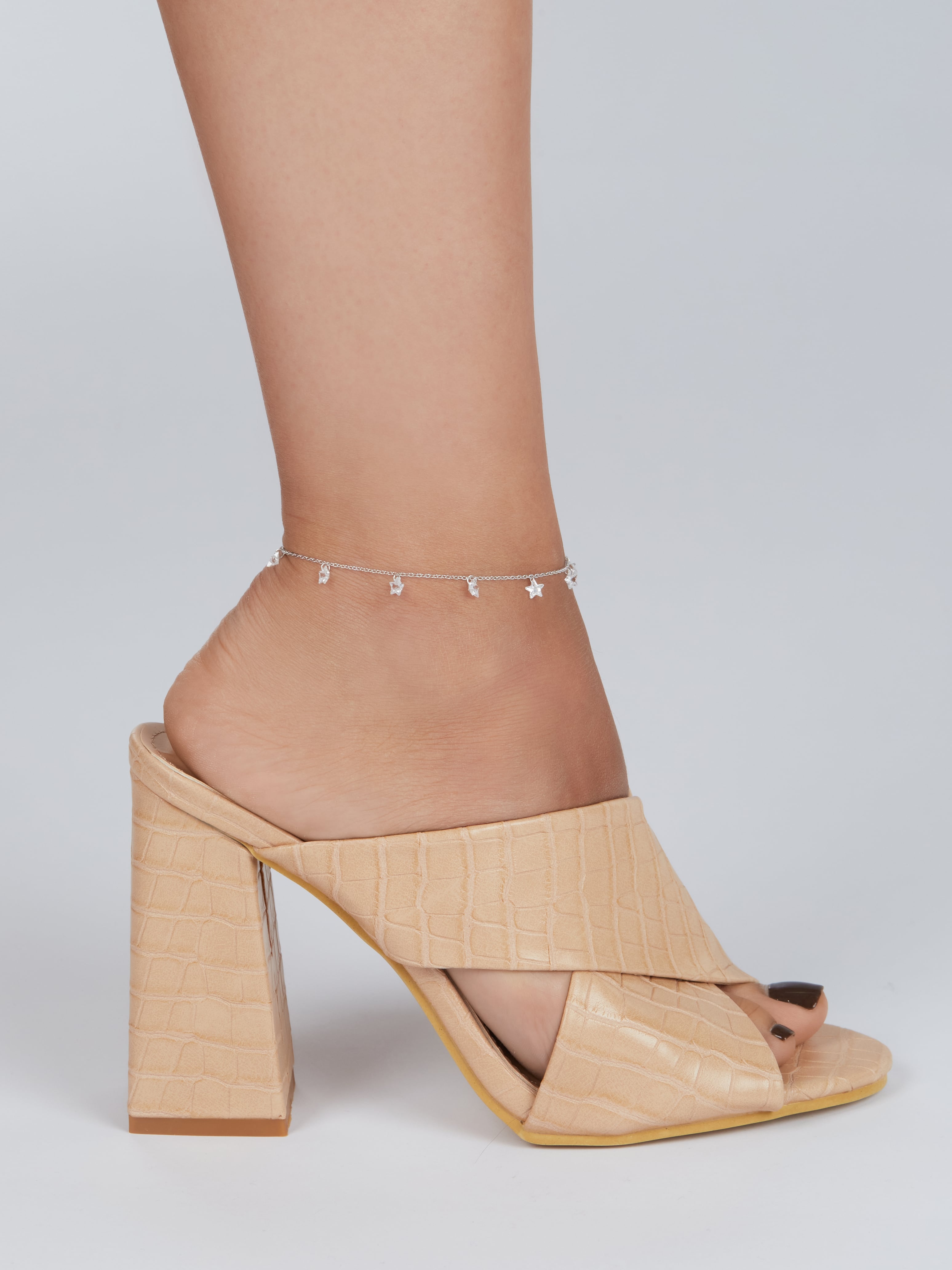 Silver & Star Shaped Cubic Zirkonia Anklet