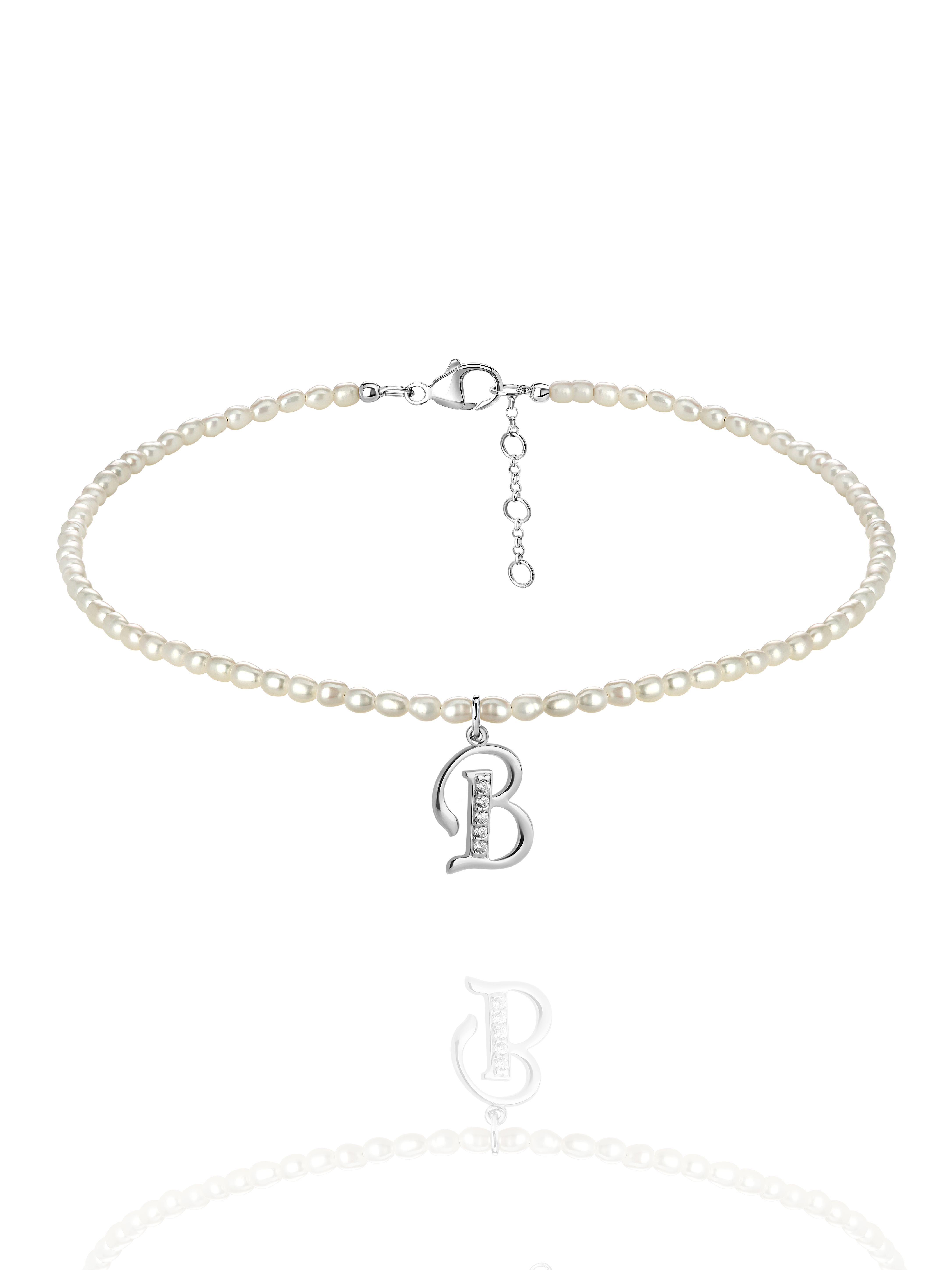Pearls, Cubic Zirkonia & Silver "B" Letter Choker