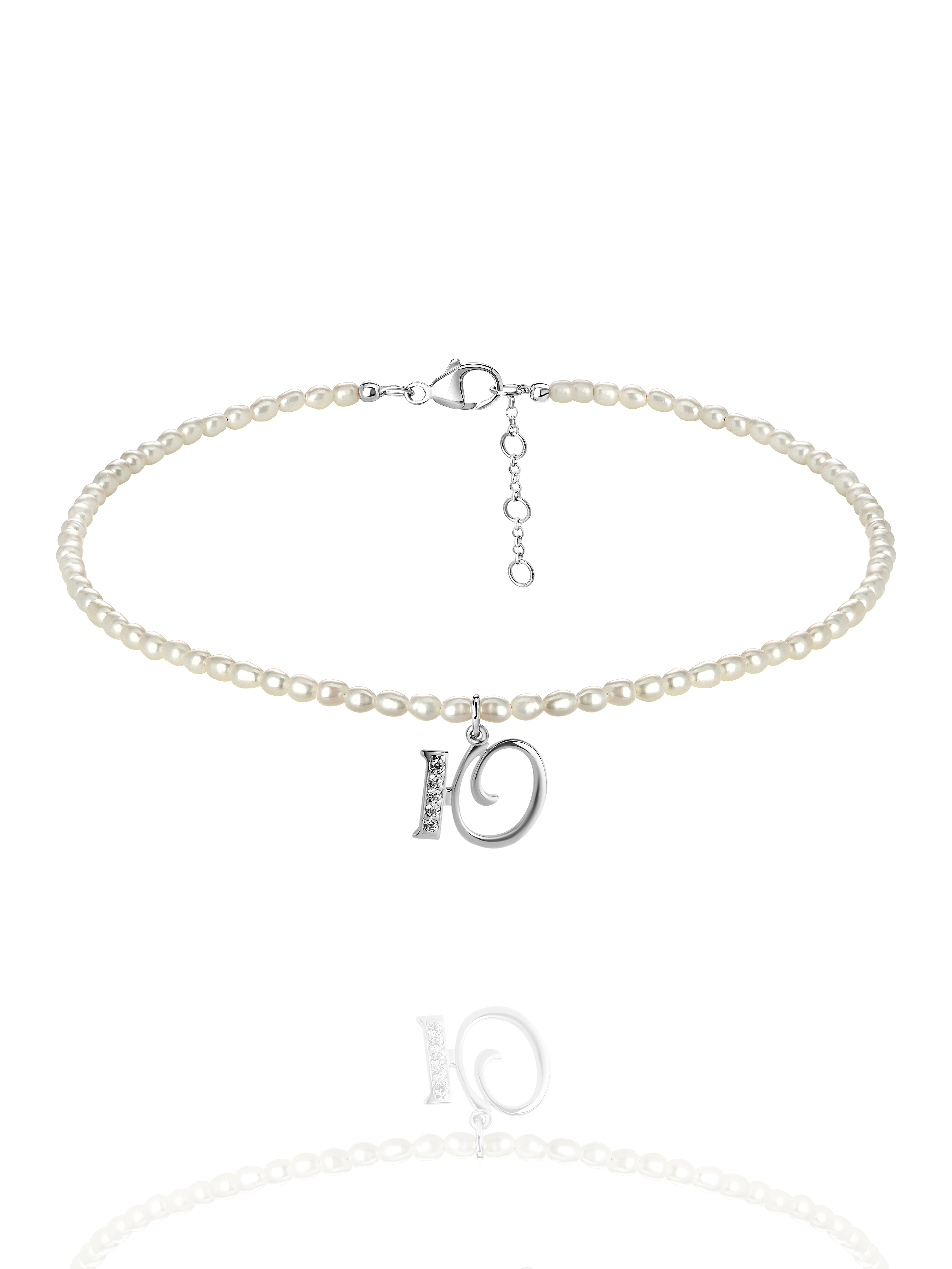 Pearls, Cubic Zirkonia & Silver "Ю" Letter Choker