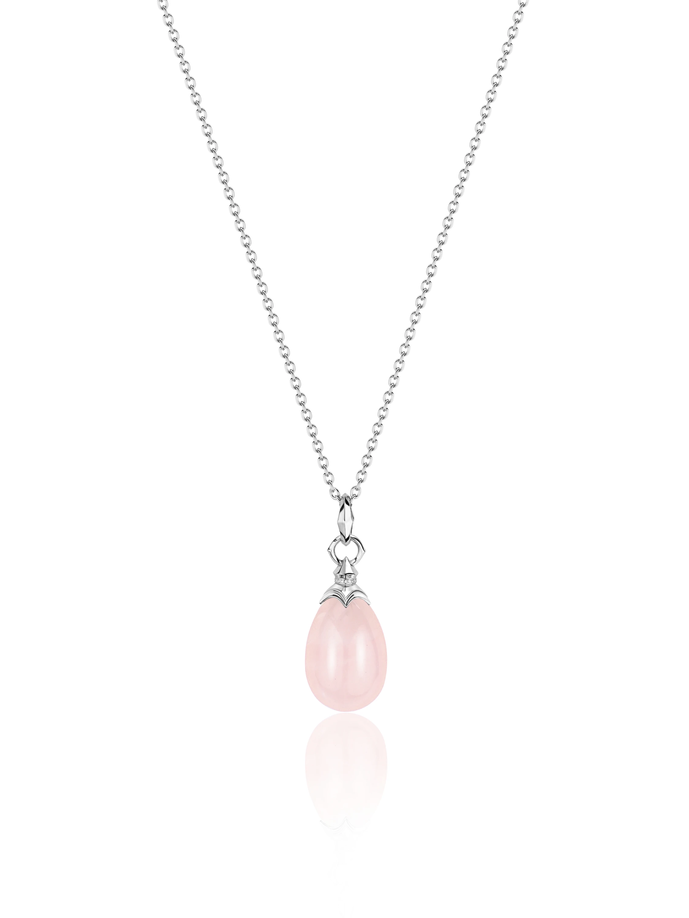 Silver necklace with a rose quartz pendant weighing 16.8 g and cubic zirconia.