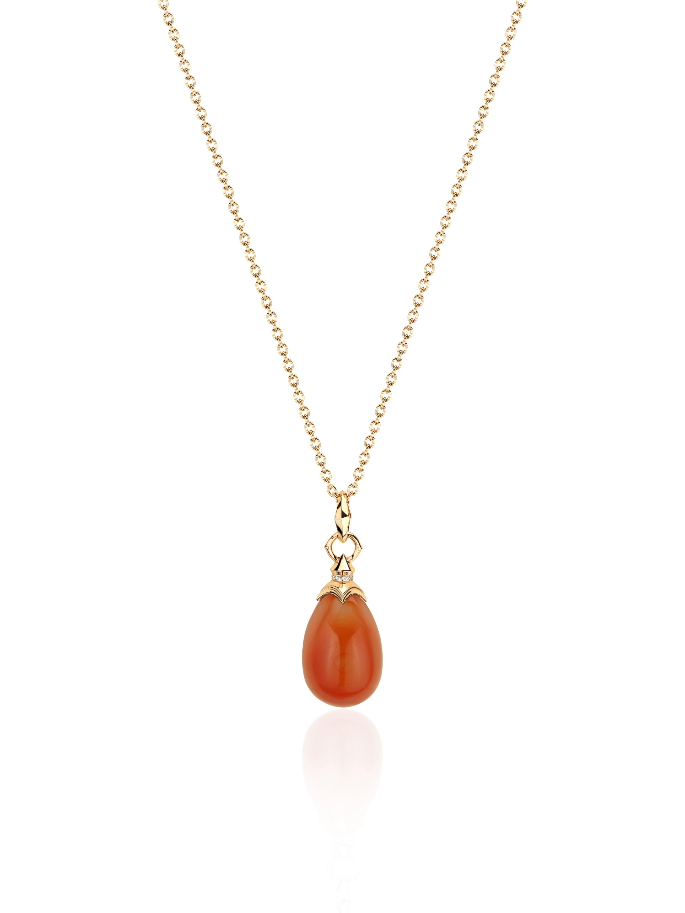 Gold-plated silver necklace with a carnelian agate pendant weighing 16.24 g and cubic zirconia.