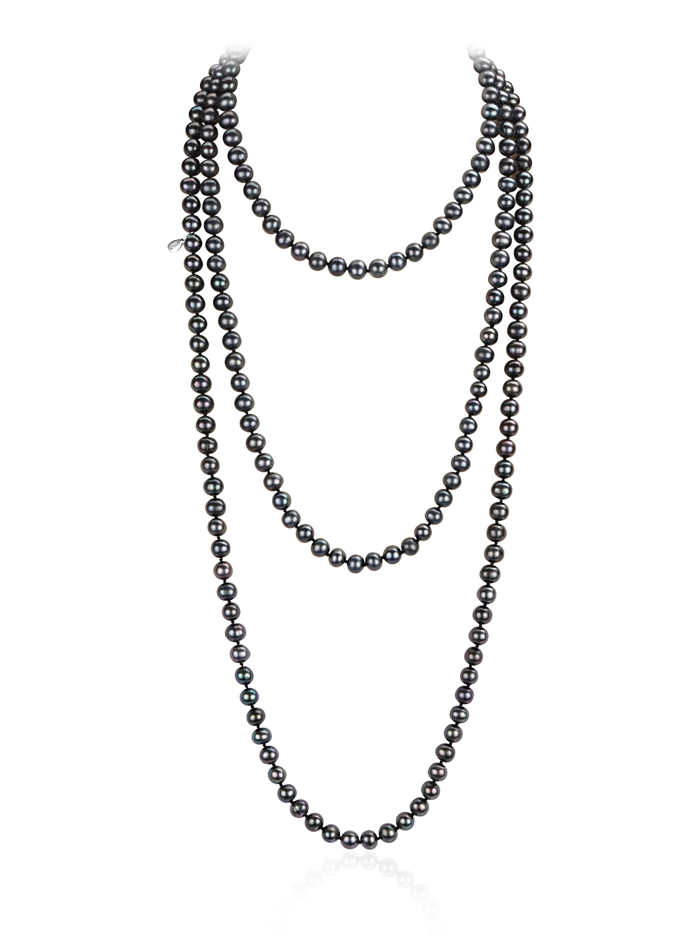 Silver necklace with black pearl beads, 155 cm