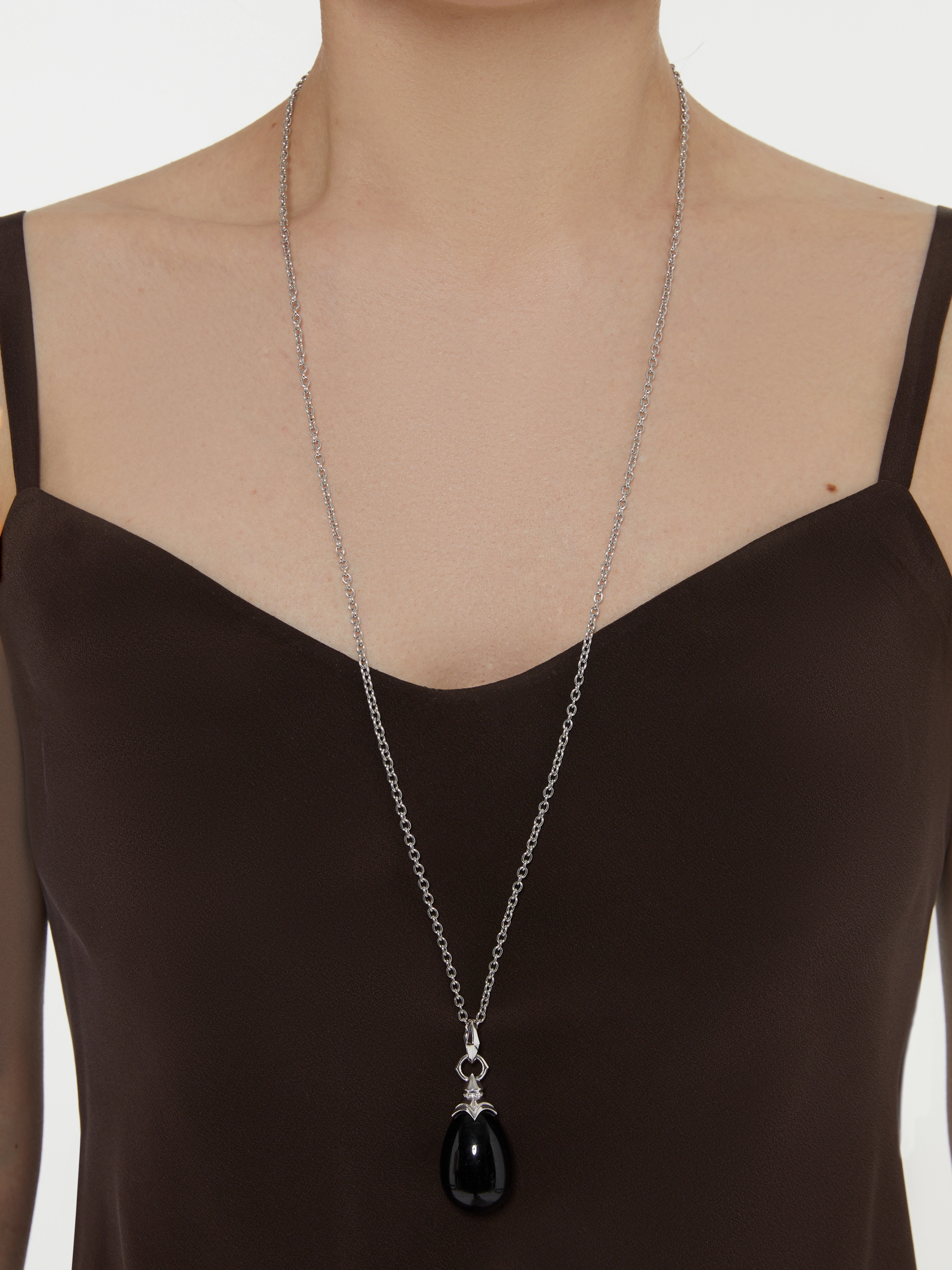 Silver necklace with an obsidian pendant weighing 15.99 g and cubic zirconia.