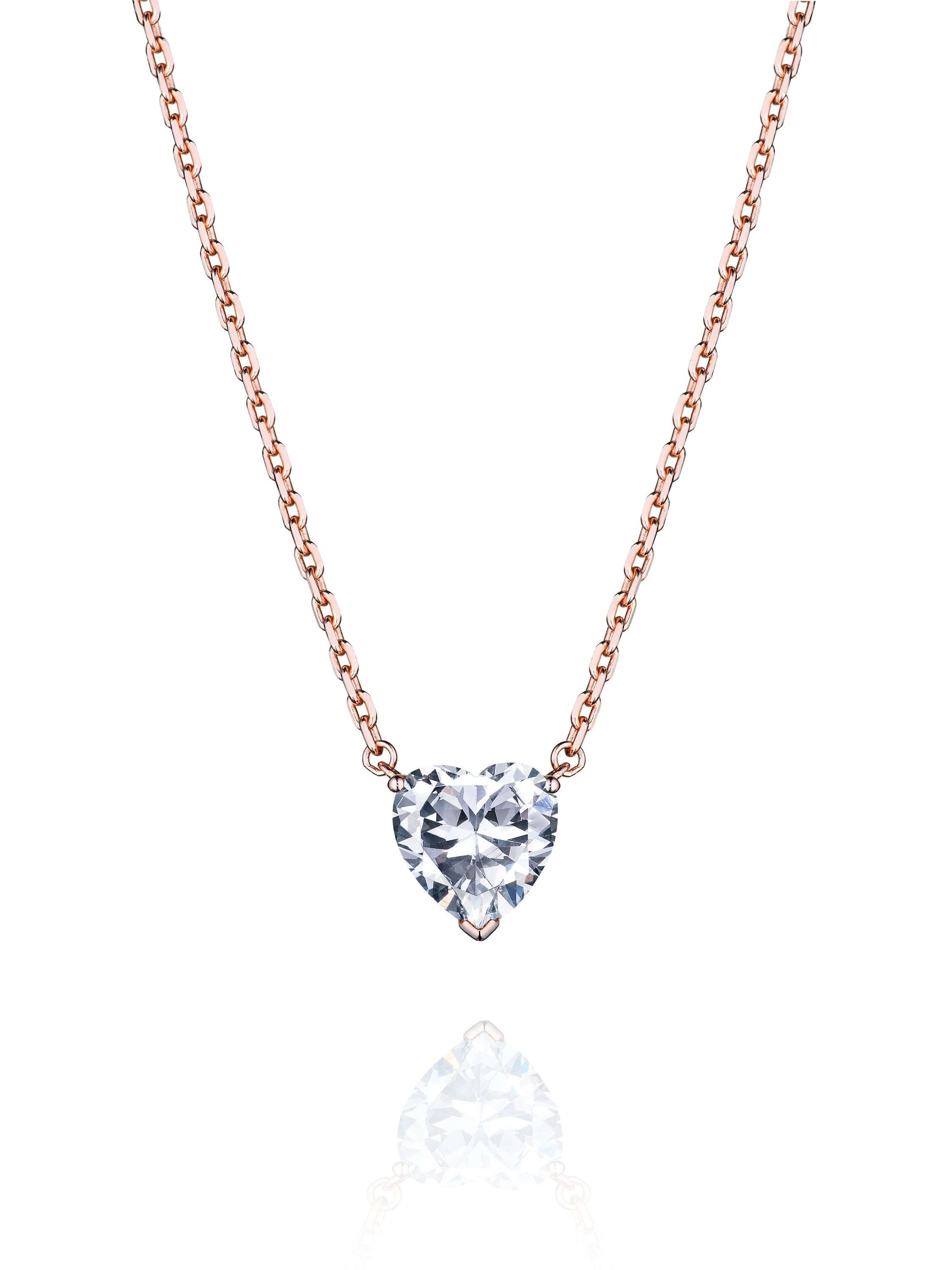 Heart-Shaped Cubic Zirkonia & Rose Silver Necklace