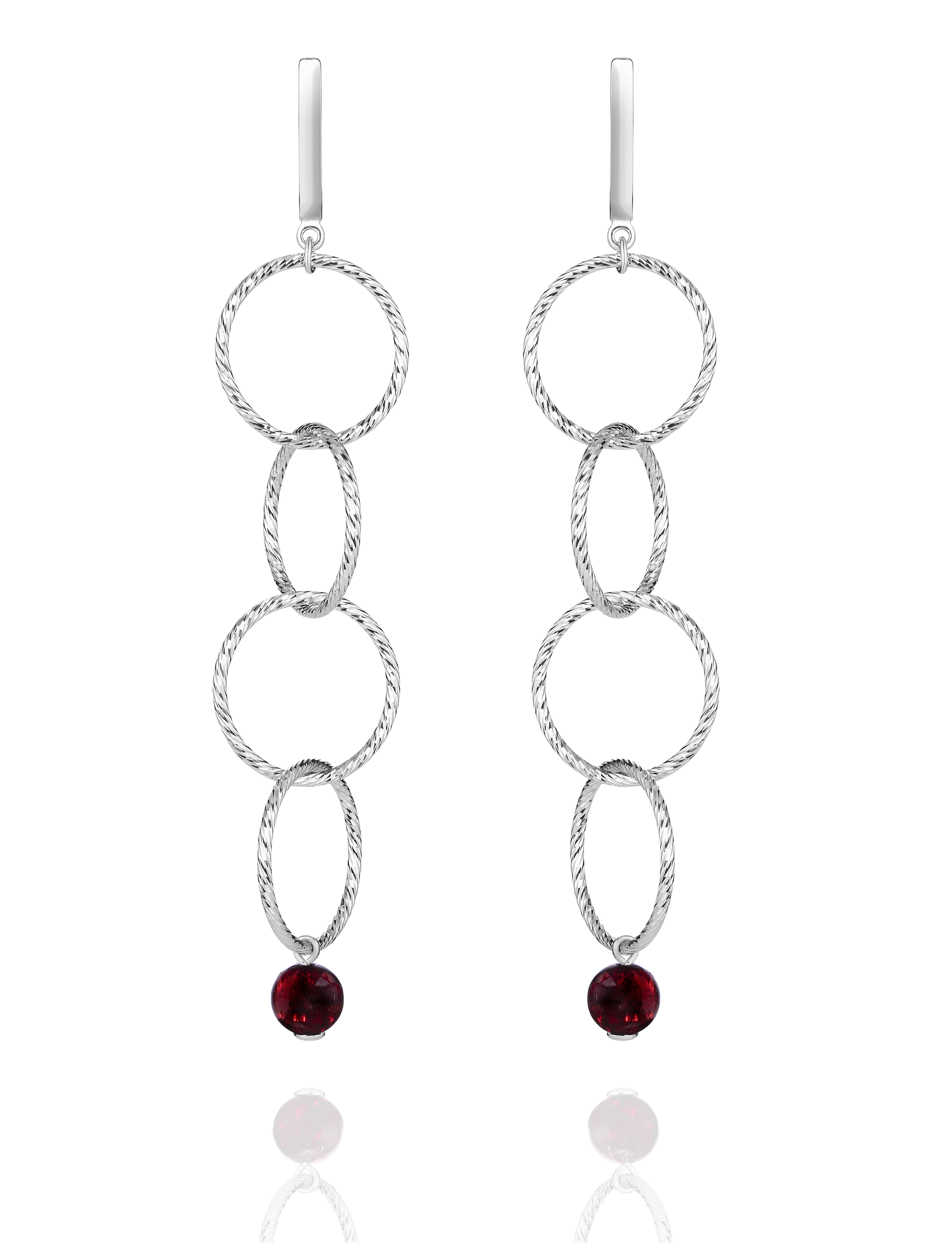 Long earrings made of 925 sterling silver with two garnet beads weighing 0.38 g.