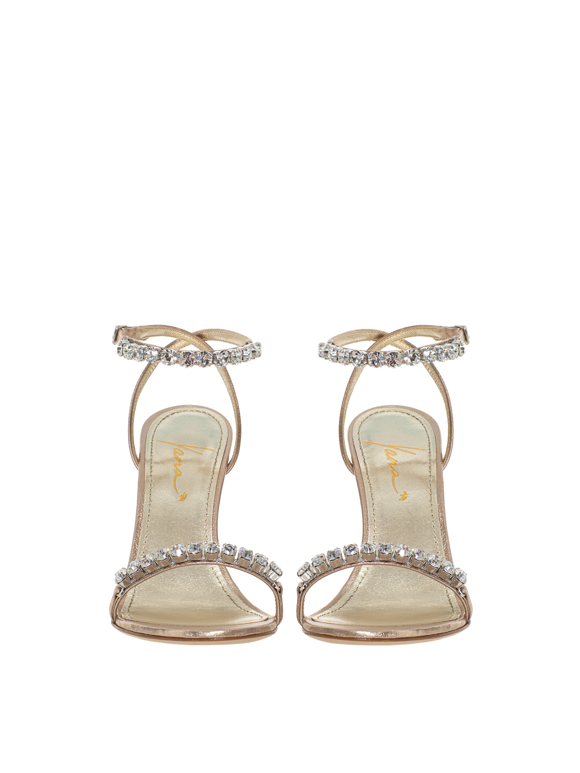 Bronze Leather Sandals With Rhinestones