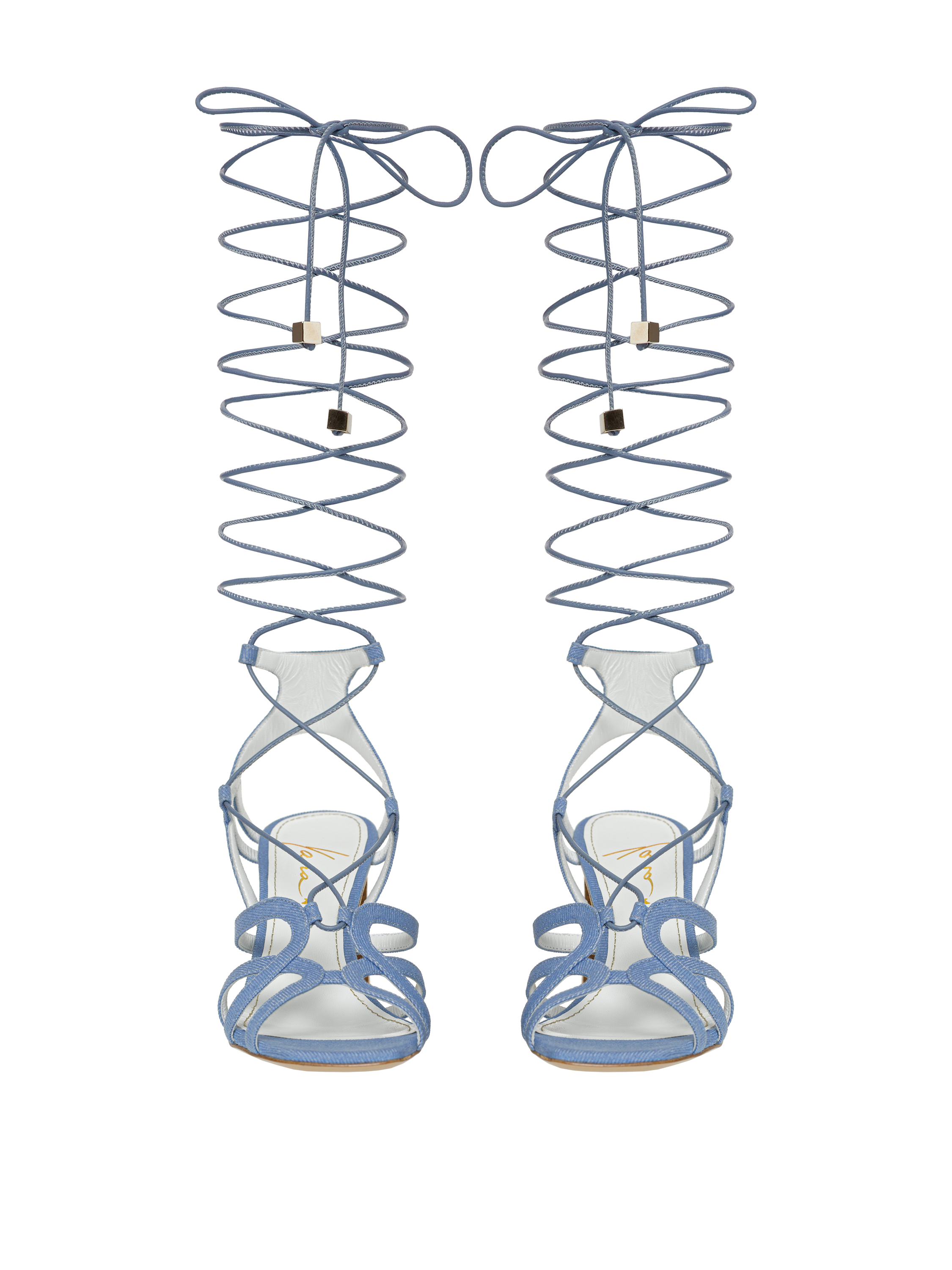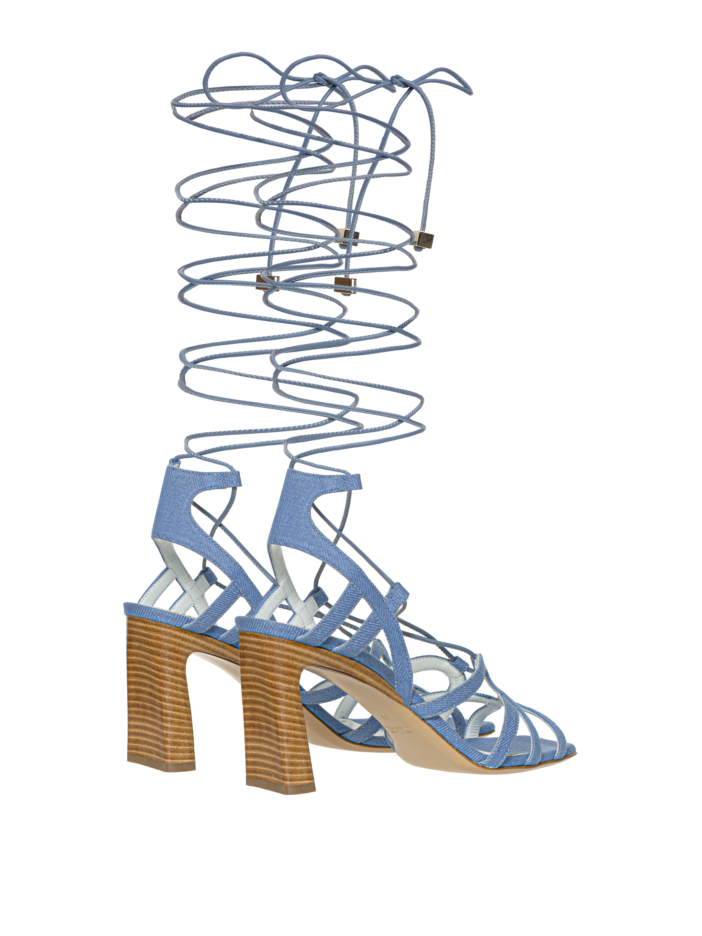 Light blue denim sandals with a square toe are a versatile option suitable for both everyday and evening looks. The comfortable last and stable heel ensure comfort. Long ties help to secure the foot and also serve as a decorative element. This model is comfortable to wear all day without feeling tired.
