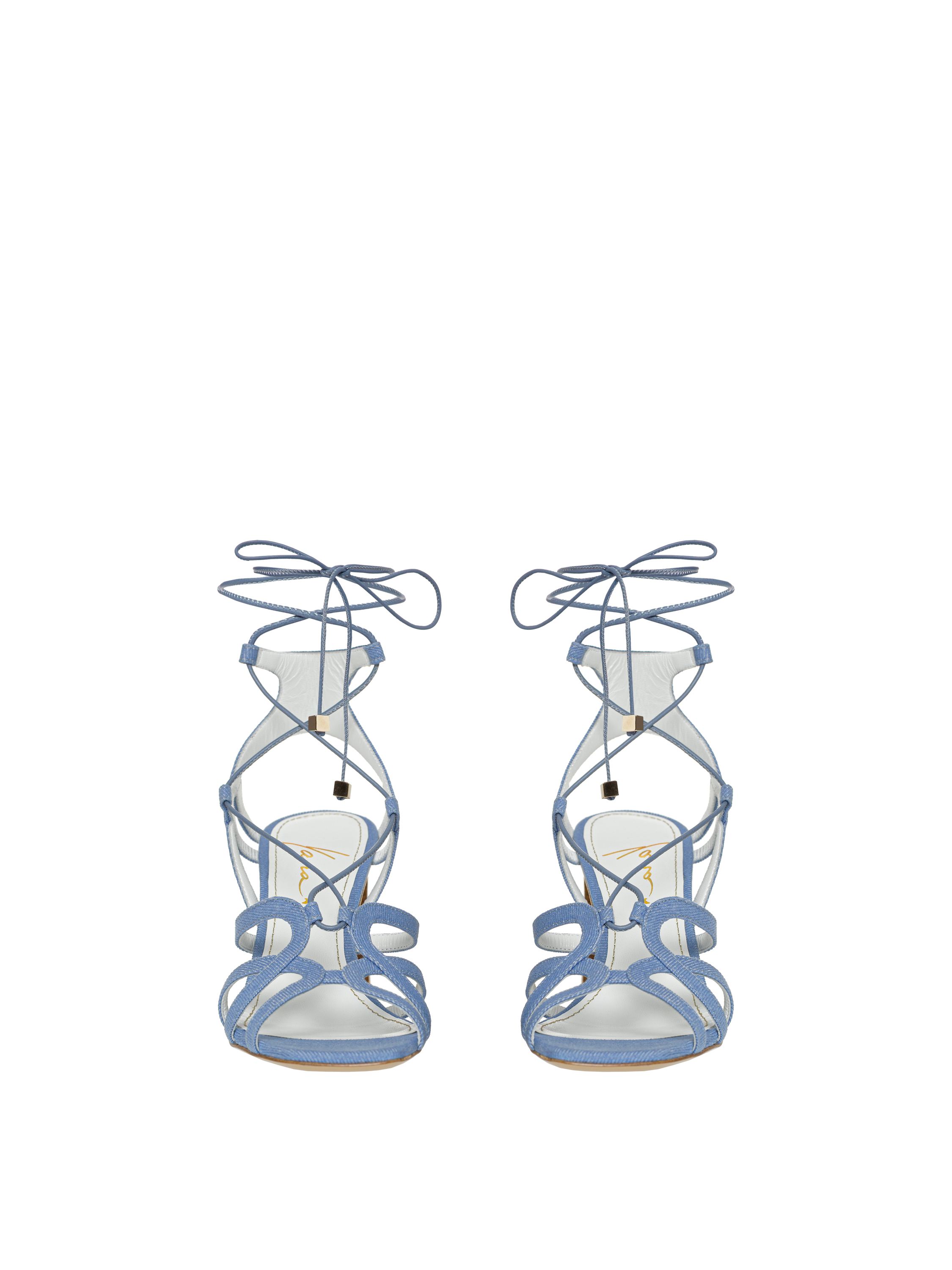Light blue denim sandals with a square toe are a versatile option suitable for both everyday and evening looks. The comfortable last and stable heel, with the foot secured by soft ties, make this model comfortable to wear all day without feeling tired.