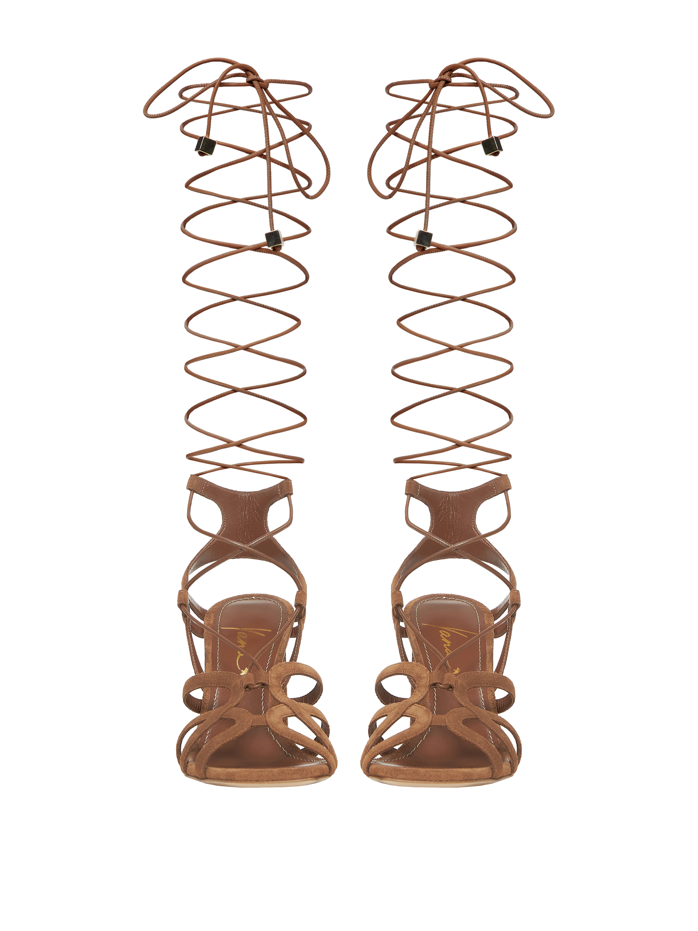 Brown Suede Lace Up Heeled Sandals
