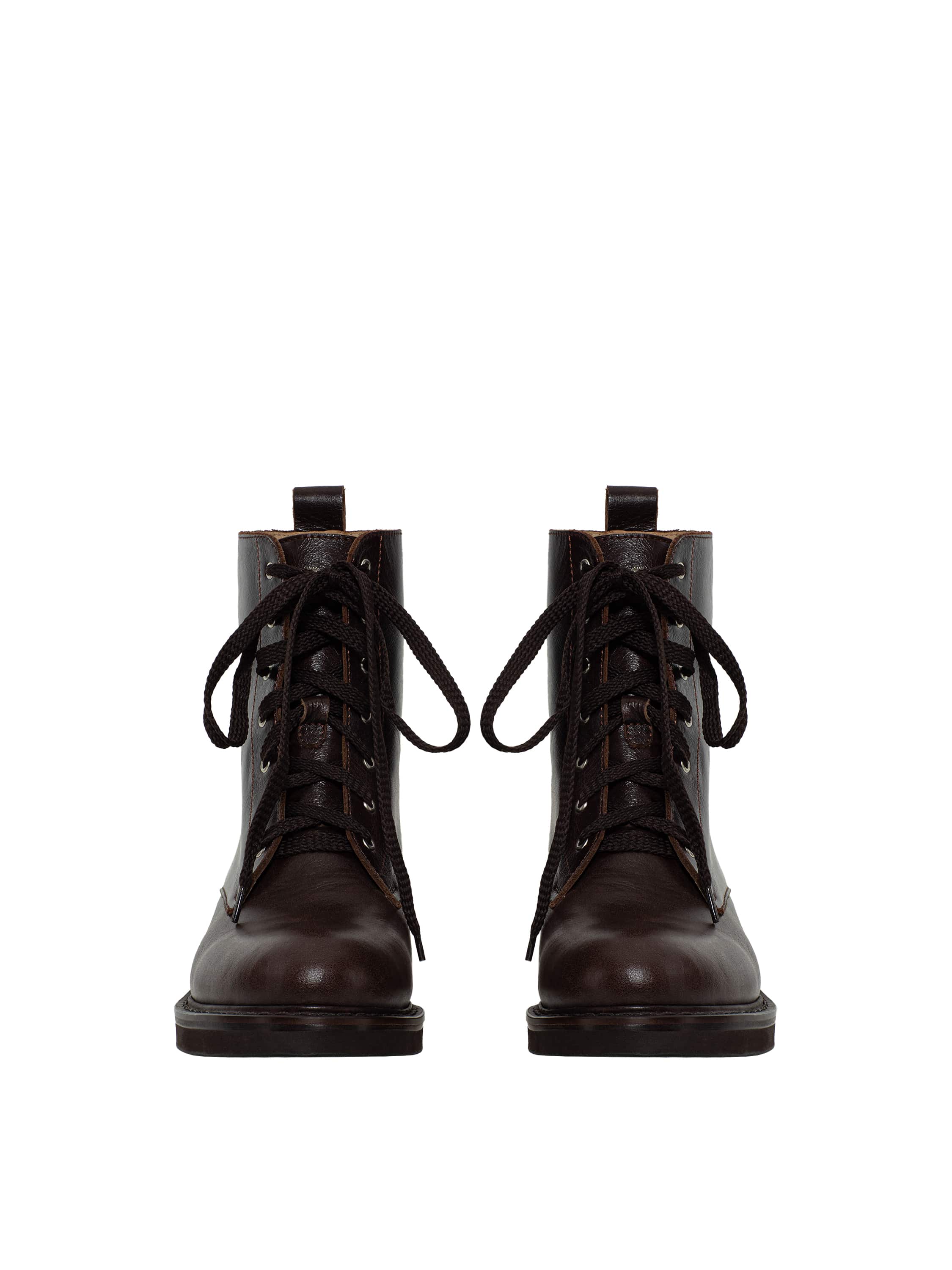 Dark brown leather lace-up boots