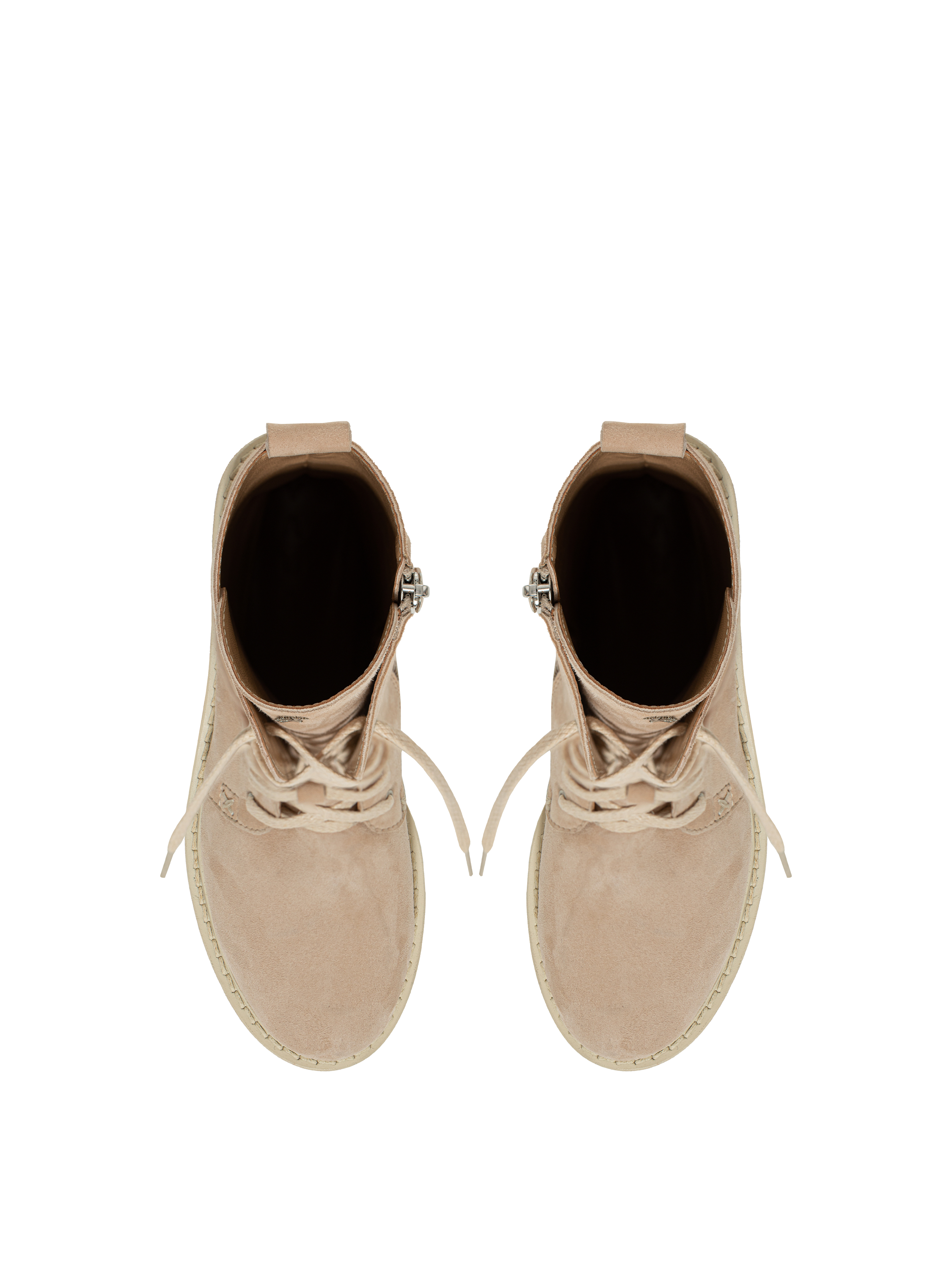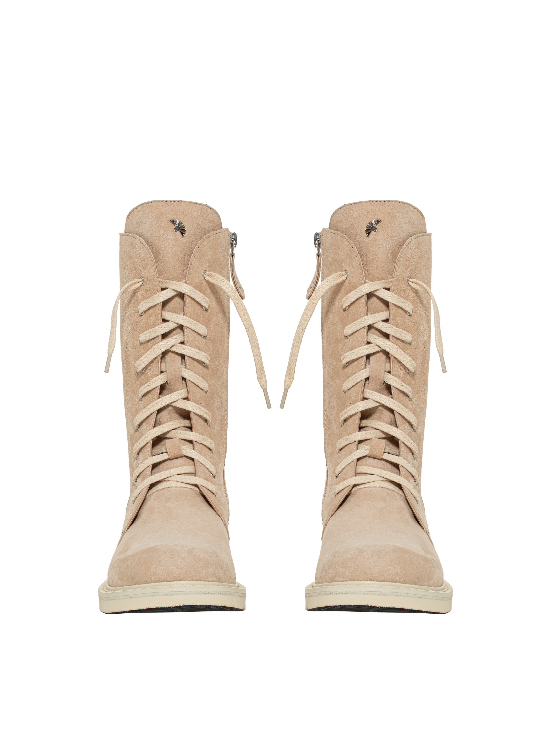 High beige lace-up boots made of genuine suede will pair well with everything in your wardrobe and elevate an everyday outfit. The model is complemented with a pull tab on the shaft to make the boots comfortable to take off.