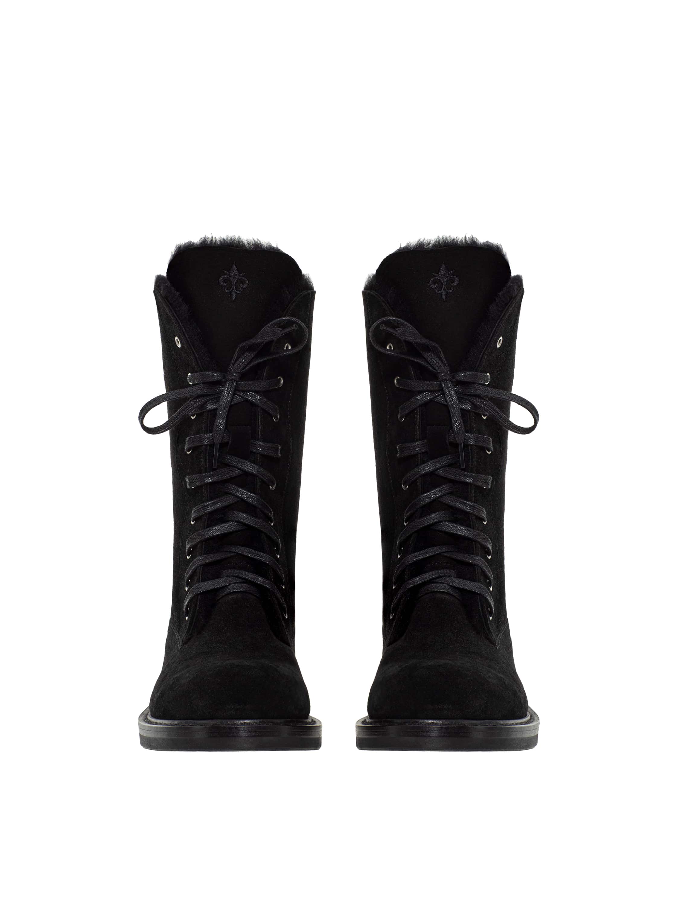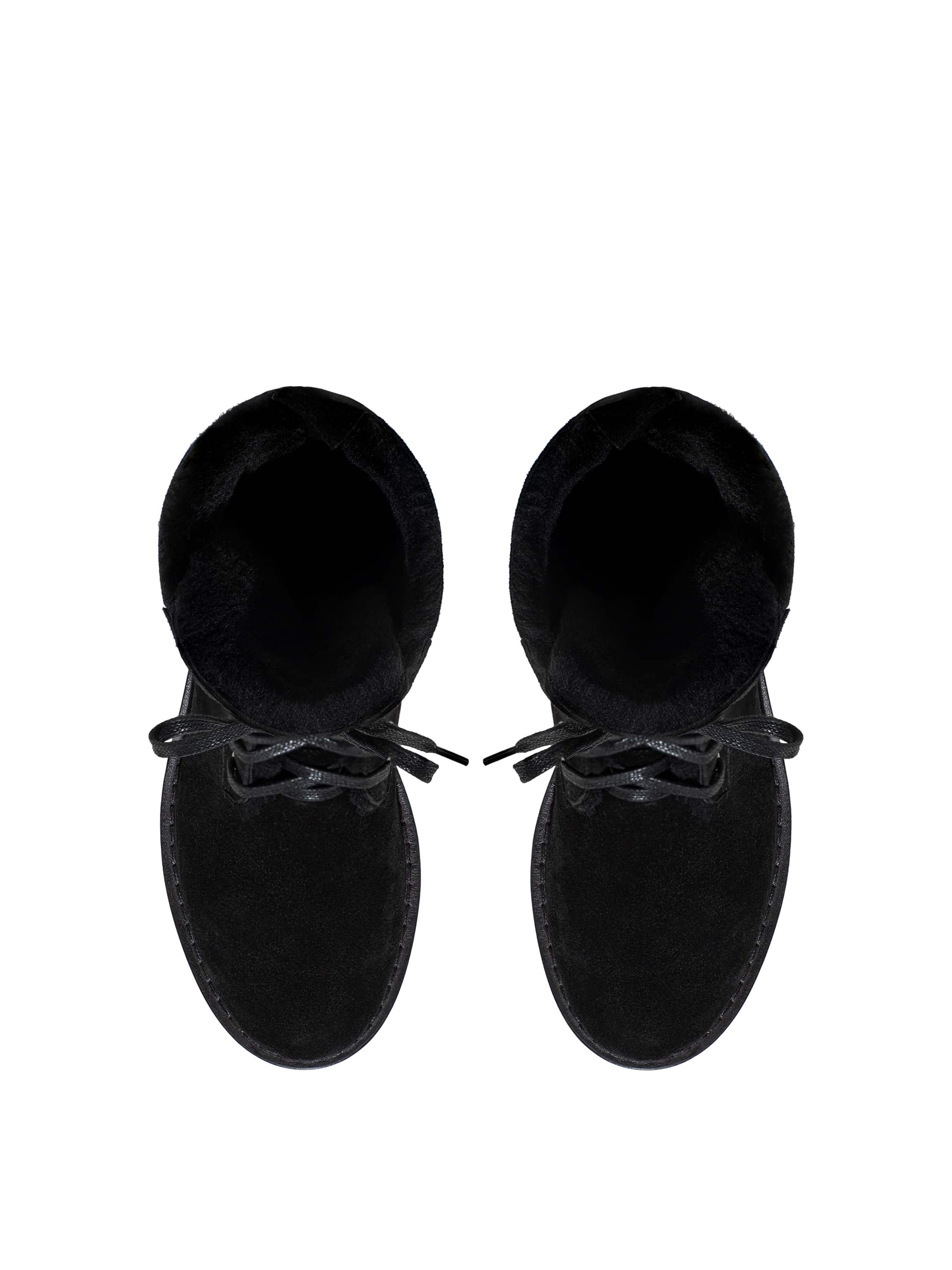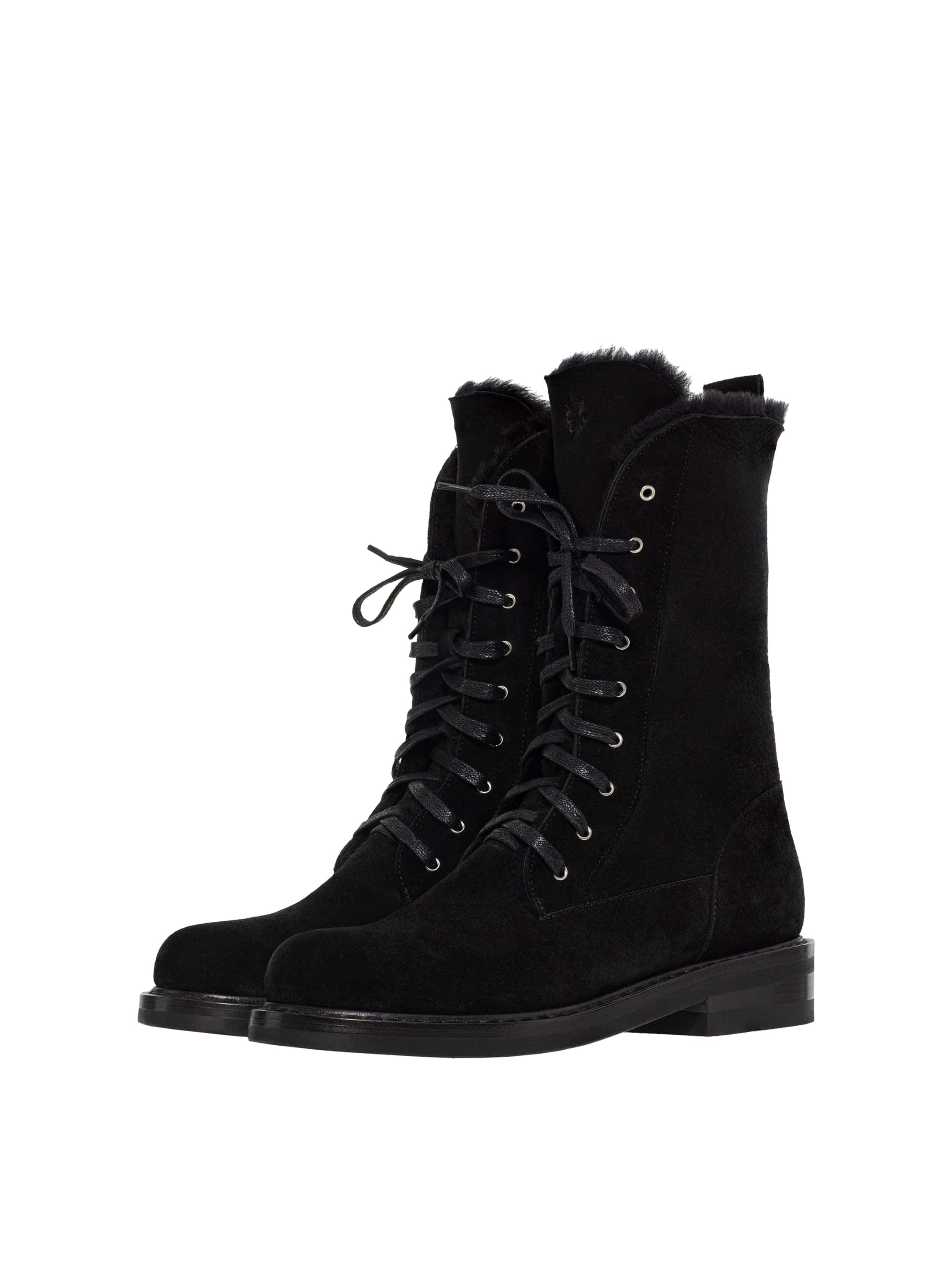 Black suede lace-up boots with fur lining