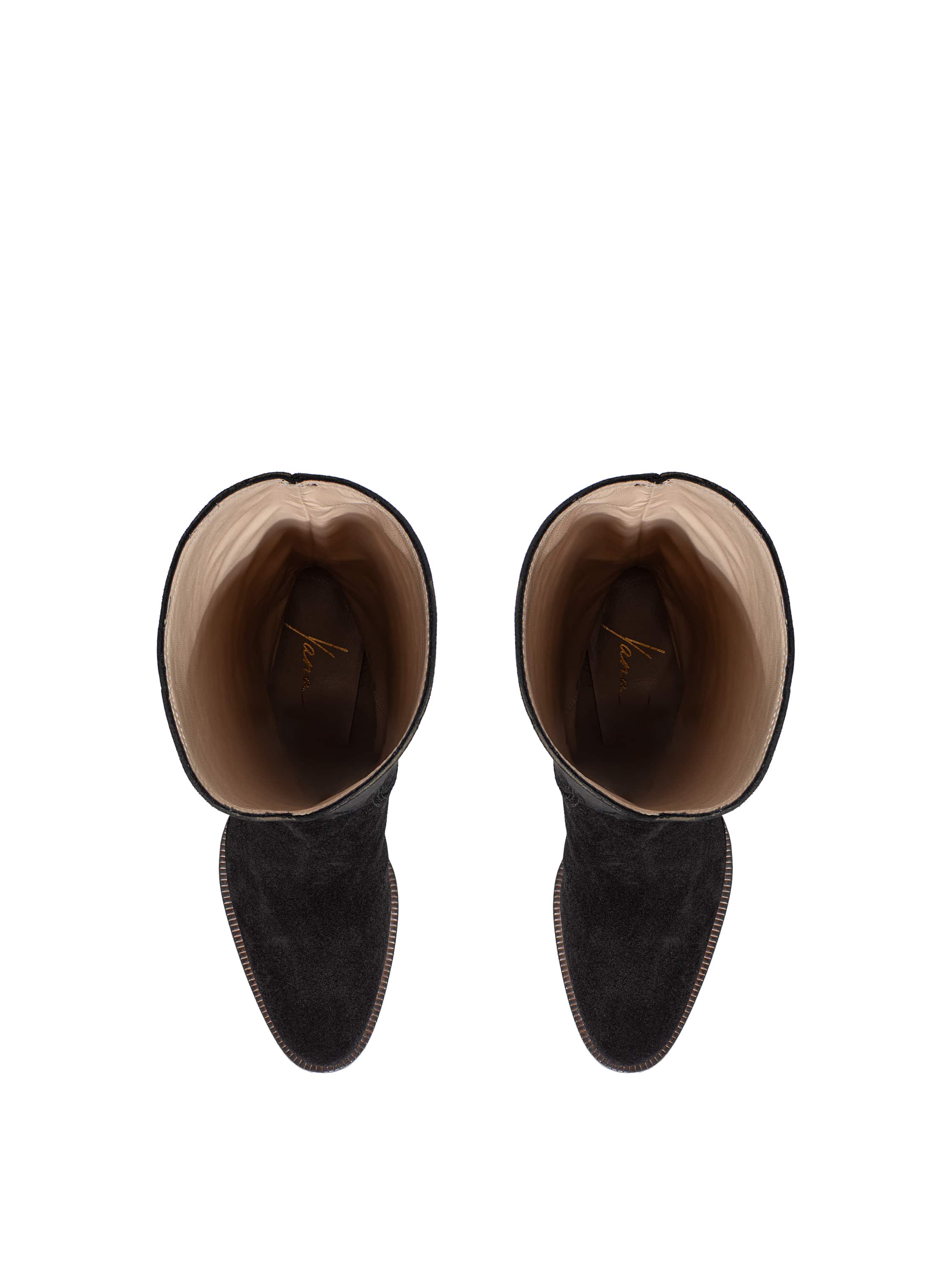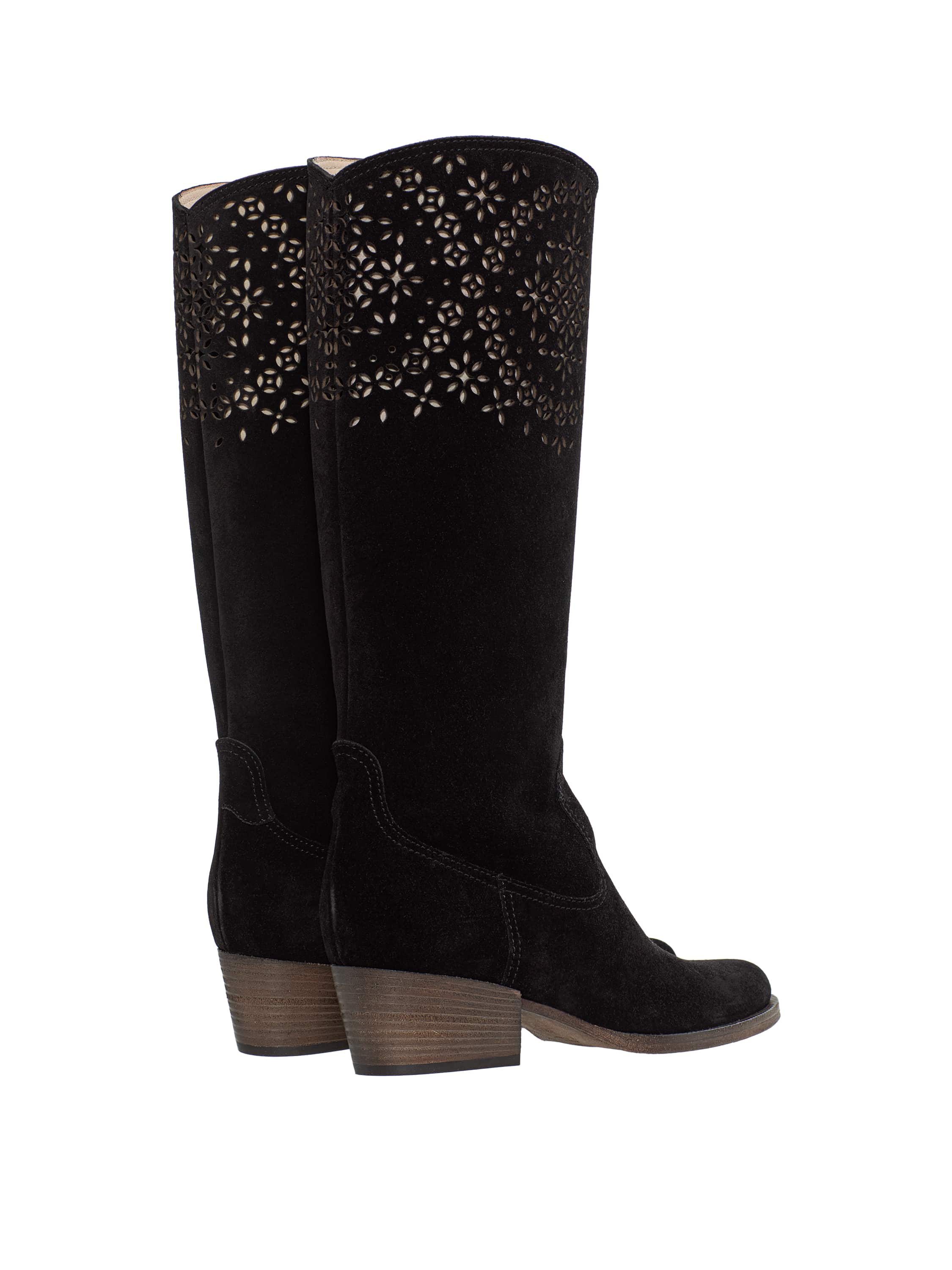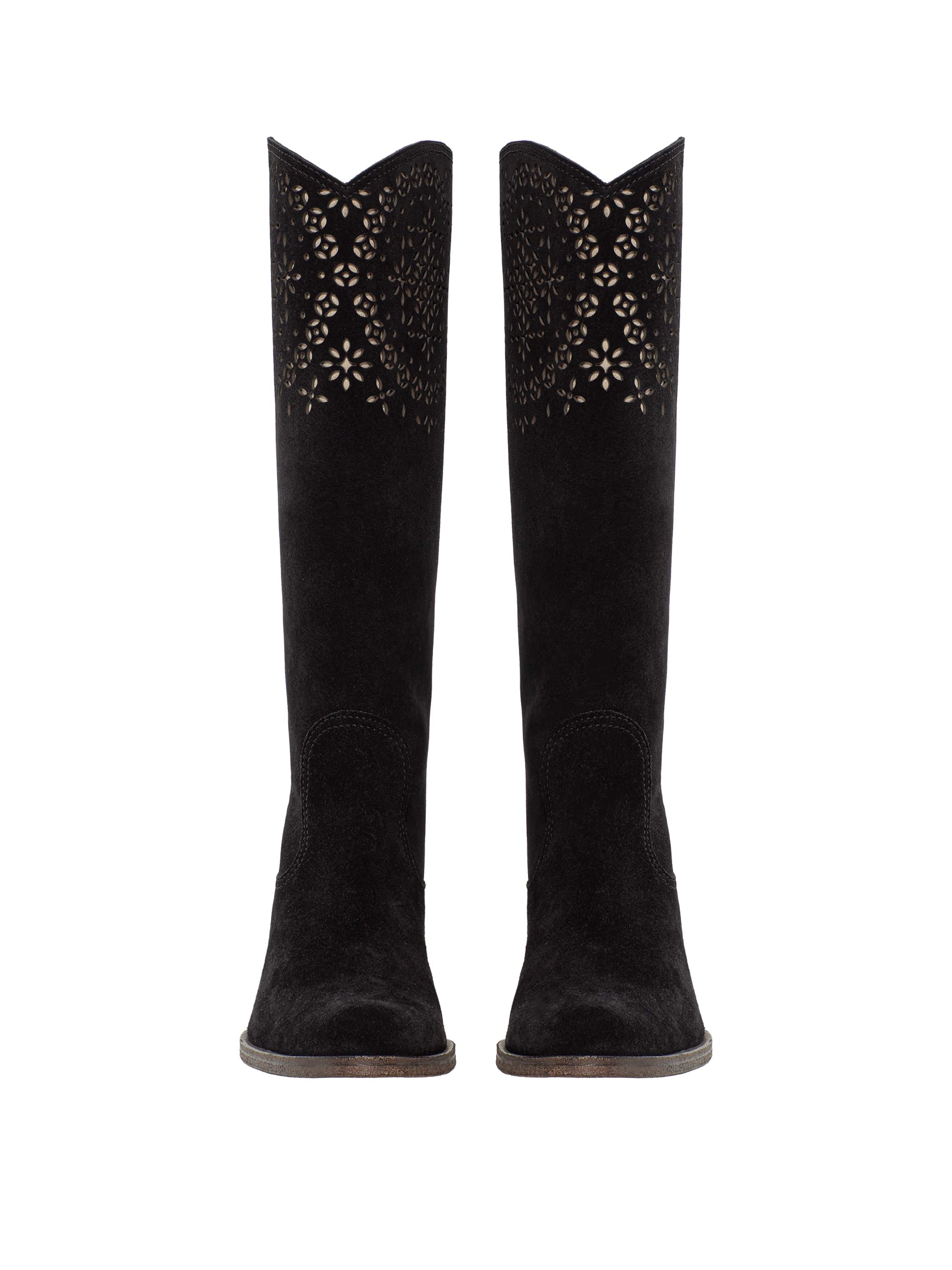 Black suede cowboy boots with perforation